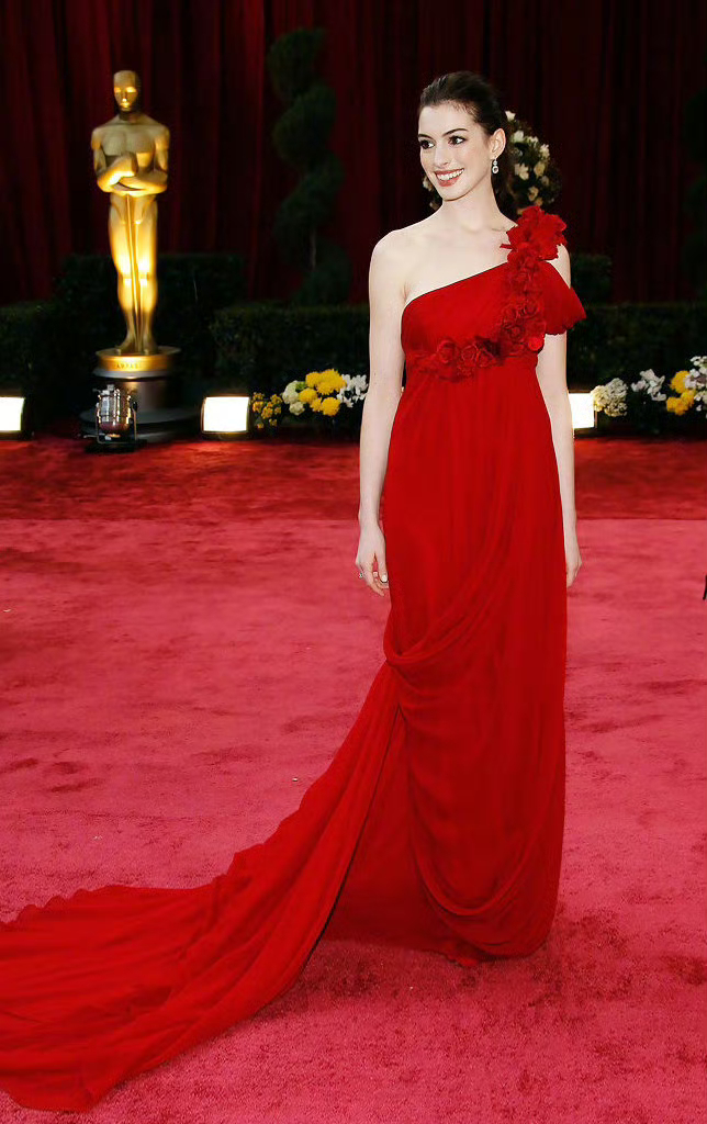 安妮·海瑟薇 08和11年奥斯卡红毯 的两套红裙