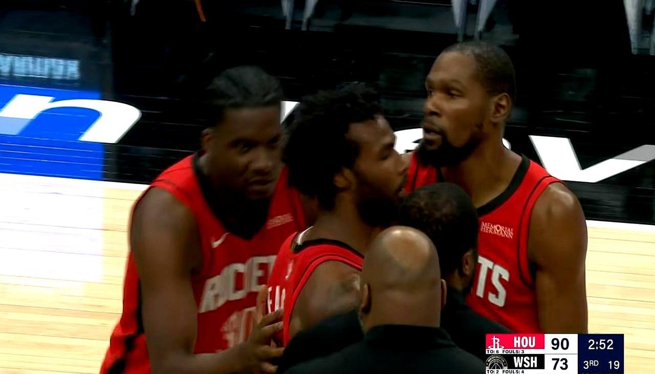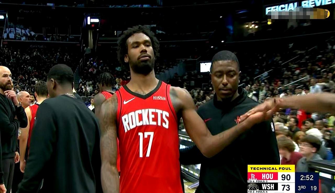 一场123比118的胜利背后,藏着职业赛场最荒诞的失控。 第三节,火箭球员塔里伊森在攻防两端,接连将奇才新秀沃特金斯重重推倒在地。 没有战术考量,只有情绪决堤。在安保和队友的拉扯中,伊森激烈对峙咆哮,最终领到两次技犯被直接驱逐。 更具戏剧性的是场边。因伤缺阵尚未迎来首秀的特雷杨,因冲进场内抗议判罚,穿着便装一同被驱逐出场。 从昔日顶撞主帅乌度卡到如今场上暴走,伊森的火爆印证了一个底层现实。 当荷尔蒙彻底吞噬理智,竞技场上的所谓血性,立刻就会沦为被规则清算的代价。 这种极度情绪化的刺头属性,究竟是球队需要的催化剂,还是随时会毁掉比赛的定时炸弹?