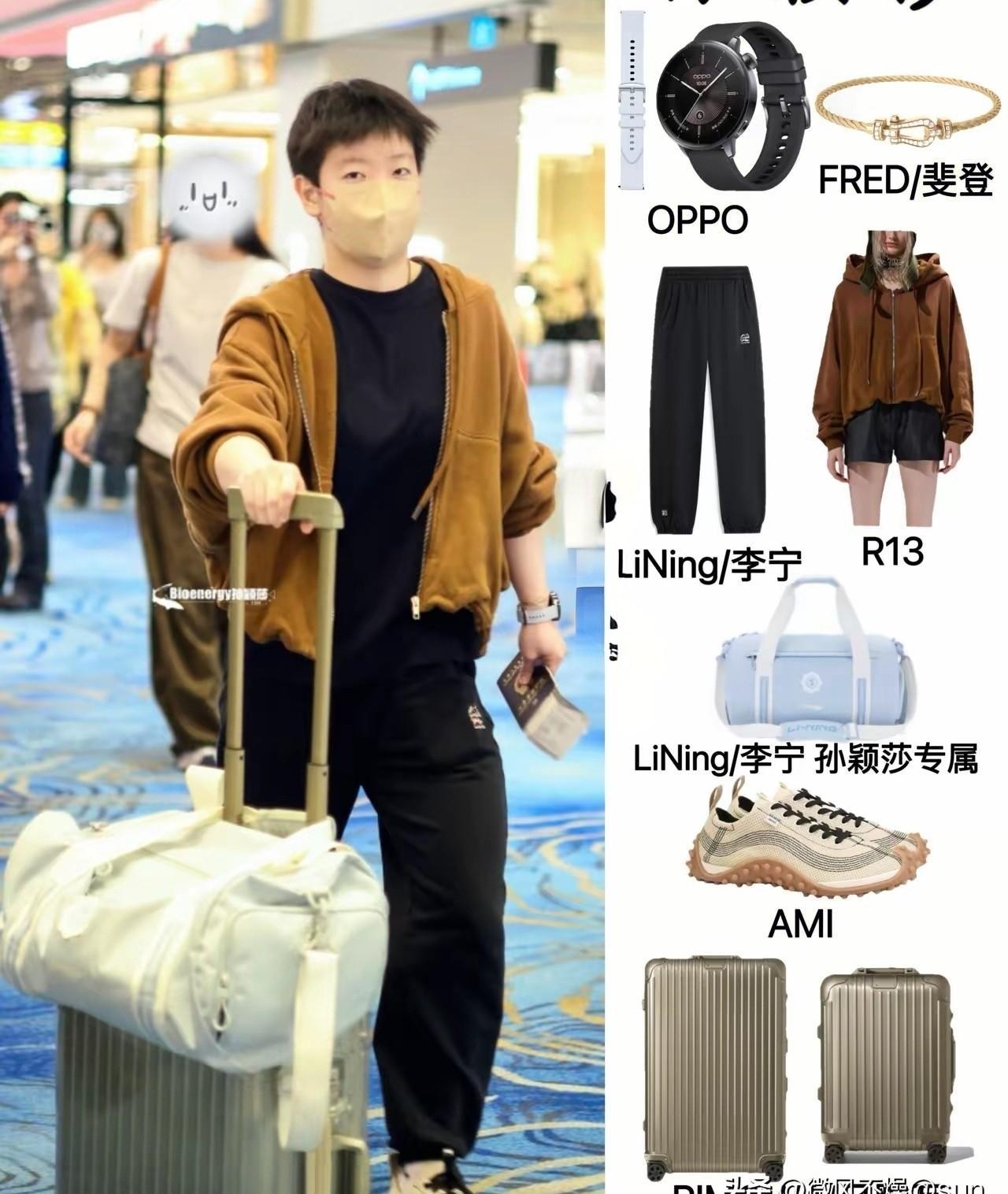 谁能想到啊 一个在球场上杀气腾腾的世界第一 私底下穿搭竟然这么“心机” 讲真的 孙颖莎这套机场look看似随意 其实处处都是高阶玩法 黑棕配色稳住了飒爽基调 焦糖色短外套一穿 瞬间把视觉重心上移 158cm的身高愣是穿出了168cm的气场 更绝的是口罩鞋子颜色呼应 这种同色系细节控操作 直接甩开普通运动风十条街 但最让我感慨的不是穿搭 是这姑娘的时间管理 一边横扫WTT新加坡、仁川、沙特大满贯 三个月狂揽三冠稳坐世界第一 一边还能把机场走成个人秀场 别的运动员赛后累到眼神涣散 她倒好 连口罩颜色都要跟鞋子配齐 这哪是随便穿穿 这分明是把冠军的掌控感 从球场延伸到了生活每个细节 所以别再说什么“运动员不懂时尚”了 顶级运动员的审美自律 早就融进了每一次击球和每一套穿搭里 你们说 这种把专业做到极致的人 是不是连穿衣服都特别带劲 孙颖莎的时尚哲学 冠军的细节控 运动风穿搭天花板