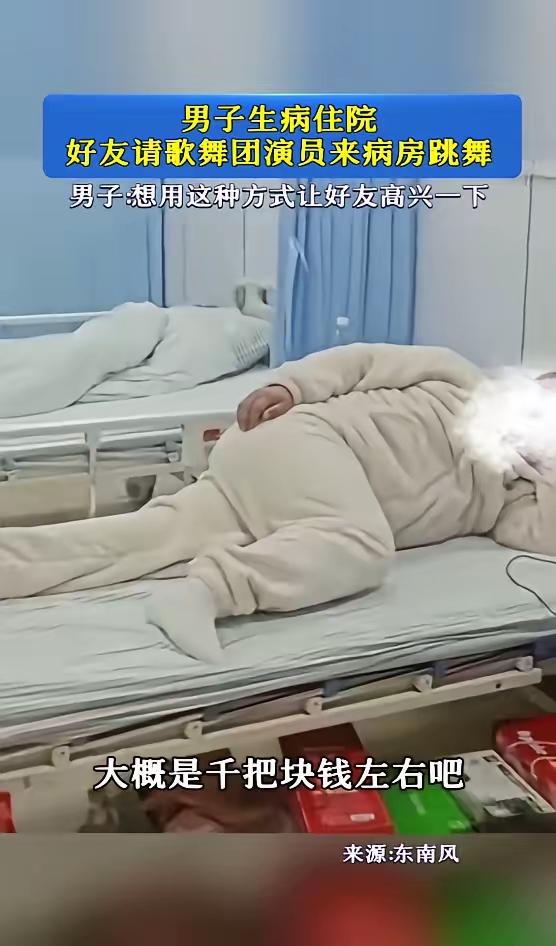 有钱人真会玩!2月27日,安徽亳州,一男子生病住院,他的几位朋友来探望时,为了让男子开心解闷,特意凑了千把元请来两名女舞蹈演员,身着演出服在病房里载歌载舞,男子先是害羞,后来便十分开心!网友:这朋友交对了! 多数网友看到视频的第一感受,是羡慕与暖心。大家羡慕的不是花钱请表演的排场,而是朋友之间那份不敷衍的惦记。事后参与策划的朋友也公开回应,当天选择的是单人病房,全程没有影响到其他患者,一千元左右的费用由几人平摊,初衷只是想让长期卧床的好友摆脱压抑,尽快打起精神。视频里男子从局促害羞到忍不住笑出声的状态变化,也直观证明,这份别出心裁的关心,确实戳中了当事人的情绪需求。 朋友之间的情谊,最珍贵的就是愿意为对方花心思。住院的人大多面临身体不适与精神焦虑,常规的礼品与客套问候,很难真正缓解低落的心情。几位朋友没有走形式化的探望流程,而是主动琢磨对方的情绪,愿意用新颖的方式制造快乐,这份真诚放在任何一段关系里,都足够打动人。这也是网友一边调侃“有钱人真会玩”,一边忍不住点赞“朋友交对了”的核心原因。 赞美归赞美,这件事放在医院这个特殊场景里,依然有值得反思的地方。医院的核心功能是诊疗与康复,安静、整洁、有序是所有患者恢复健康的必要条件。国内各级医院的住院须知与探视管理制度中,均明确要求探视人员保持病房安静,不得在病区内开展娱乐活动、高声喧哗。这些规定不是多余的约束,而是为了保护每一位患者的休息权利,保障医护人员的工作秩序。 即便当天使用单人病房,表演伴随的音乐与声响,依然可能通过门窗、走廊传导到相邻病区,影响需要静养的重症患者、术后病人,也会打乱护士巡房、医生查房的工作节奏。生病之人的身体处于虚弱状态,过度热闹的环境会引发情绪亢奋,反而不利于睡眠、饮食与药物吸收,看似解压的热闹,实则可能给身体恢复带来负面影响。 关心可以有创意,不能无边界。真正的体贴,从来不是只顾满足一方的情绪,而是兼顾他人的感受。探病的核心价值是陪伴与支撑,不是哗众取宠的表演。安安静静坐在床边聊几句家常,帮忙端水、整理物品,耐心听患者倾诉烦躁,这些朴素的举动,不需要花钱,却比临时搭建的娱乐场景更贴合病房的需求,也更能传递踏实的温暖。 这件事也给日常社交提了一个醒,所有的人情表达,都要建立在遵守规则、尊重他人的基础上。私人的快乐不能建立在干扰公共秩序的前提上,再真诚的心意,也要用合适的方式传递。好玩与越界、暖心与扰民,往往只有一步之差,守住公共空间的底线,把握好行为的分寸,善意才能被所有人接受。 心意没有高低,方式却有对错。用守规矩的姿态表达关心,用懂体谅的行动维护情谊,这样的相处,才是真正的长久与舒服。 各位读者你们怎么看?欢迎在评论区讨论。