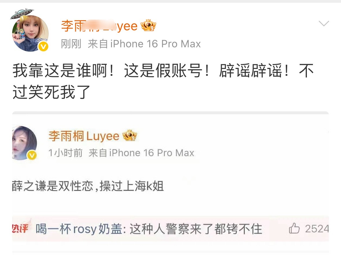 wok,刚刚李雨桐辟谣了冒充她的假账号顺带笑了一下吐槽薛之谦的内容…