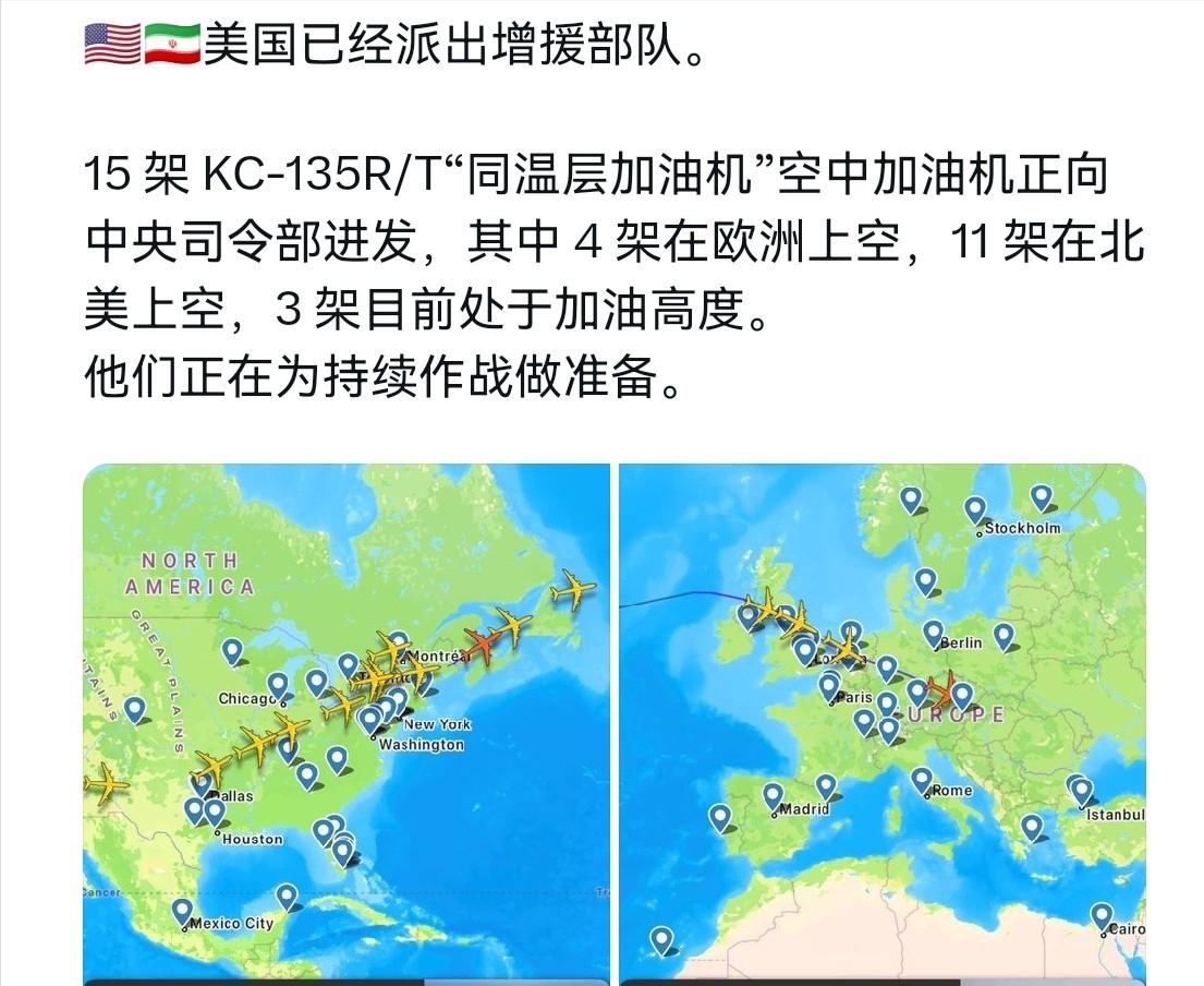 低估了伊朗!美国不得不启动“添油”战术了!   3月3日,外媒传来的消息,美国已经悄悄派出了新的援军,15架KC-135R/T空中加油机正加急向中央司令部移动,其中4架已经飞到了欧洲上空,11架还在北美上空待命,另有3架此刻正处于加油高度,随时准备奔赴前线。   谁也没想到,曾经气势汹汹、扬言要速战速决拿下伊朗的美国,如今竟然被逼到了不得不启动“添油”战术的地步,这般狼狈模样,和当初的嚣张气焰比起来,简直判若两人。   美国一开始打伊朗,压根没把这个中东国家放在眼里,以为凭借自己的军事优势,用不了24小时就能彻底掌控局势,可现实狠狠打了它一个耳光,速战速决的构想彻底破产,如今只能一步步增兵,陷入了骑虎难下的境地。   KC-135R/T空中加油机可不是普通的装备,它是美军战机的“空中粮仓”,能给远程作战的战机补充油料,让战机能够持续留在战场执行任务。   美国此刻紧急调动这么多加油机,说白了就是之前的军事行动远远超出了预期,战机续航跟不上,部队消耗也远超想象,不派加油机支援,前线的军事行动根本无法持续。   这背后,全是美国低估伊朗的代价——它原本以为,凭借美以联合的“史诗狂怒行动”,打击伊朗境内上千个目标,击沉伊朗海军主力,甚至击杀伊朗最高领袖哈梅内伊,就能让伊朗彻底屈服,可伊朗的反抗力度,远比美国预想的要顽强得多。   截至目前,美军承认的有6名士兵阵亡,还有多架战机坠毁,损失不断增加,原本的速战速决,硬生生变成了一场消耗战。   更让美国头疼的是,盟友也开始不配合,西班牙直接拒绝支持对伊军事行动,还让美国撤回了部署在当地的10架KC-135加油机。   美国的增兵就意味着要投入更多的军费,付出更多的人员伤亡,可美国现在已经没有退路,不继续增兵,之前的投入就会全部打水漂,可继续“添油”,损失只会越来越大。   而这一切,最终都会算到特朗普和共和党头上,毕竟这场对伊军事行动,是特朗普政府主导的,也是共和党全力支持的。随着中期选举的临近,这场看不到头的战争,已经成为特朗普和共和党的致命隐患。   最新的民调已经给出了答案,只有约27%的美国成年人支持这场对伊军事行动,43%的人明确反对,还有不少共和党支持者在美军伤亡增加后,撤回了自己的支持。   特朗普的支持率已经跌至36%,较一年前大幅下滑,国内多地还爆发了反战抗议,民众谴责这场战争毫无根据,呼吁停止军事升级。   国会两党也出现分歧,民主党议员纷纷批评特朗普未经国会授权就发动战争,担忧美国会再次陷入漫长且代价高昂的中东冲突。   特朗普原本想靠这场战争提振自己的支持率,为共和党在中期选举中加分,可他万万没想到,低估伊朗让这一切都变成了泡影。现在美军损失不断加大,战争看不到尽头,民众不满情绪越来越高,特朗普和共和党想要在2026年中期选举中获胜,现在看来已经很难了。   对于美国民众来说,他们更关心的是国内的经济和民生,而不是一场无休止的海外战争,更不是不断增加的人员伤亡和军费开支。   美国亲手种下的苦果,最终还是要自己咽下去,而这场因低估对手引发的“添油”之战,也注定会成为特朗普和共和党选举路上的一道无法逾越的坎。