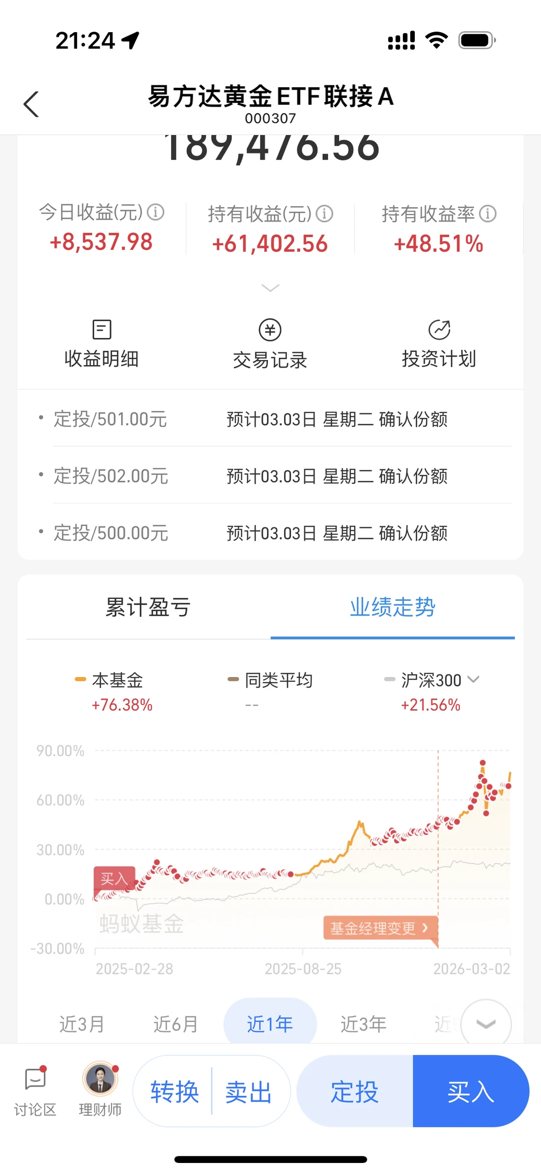 [笑哭R]感觉我这个中国体质 每次听到国际金价时,5000+总是一愣一愣的 还得换算下多少钱一克 这种1200一克,更有体感 Ps. 黄金定投一年了,最近涨太多,收益率被拉低了,还有点不太敢继续定投了[笑哭R]