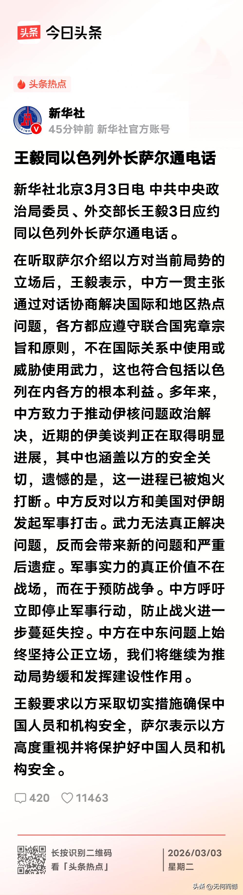 中东现在乱成了一锅粥,美国和以色列是始作俑者,负有不可推卸的责任,我们的态度是鲜明的,我们的立场是一贯的,我们的发声是客观公正的,相信能够引起他们的重视,无论到什么时候,实力才是最好的底牌,实力才是最好的盾牌!