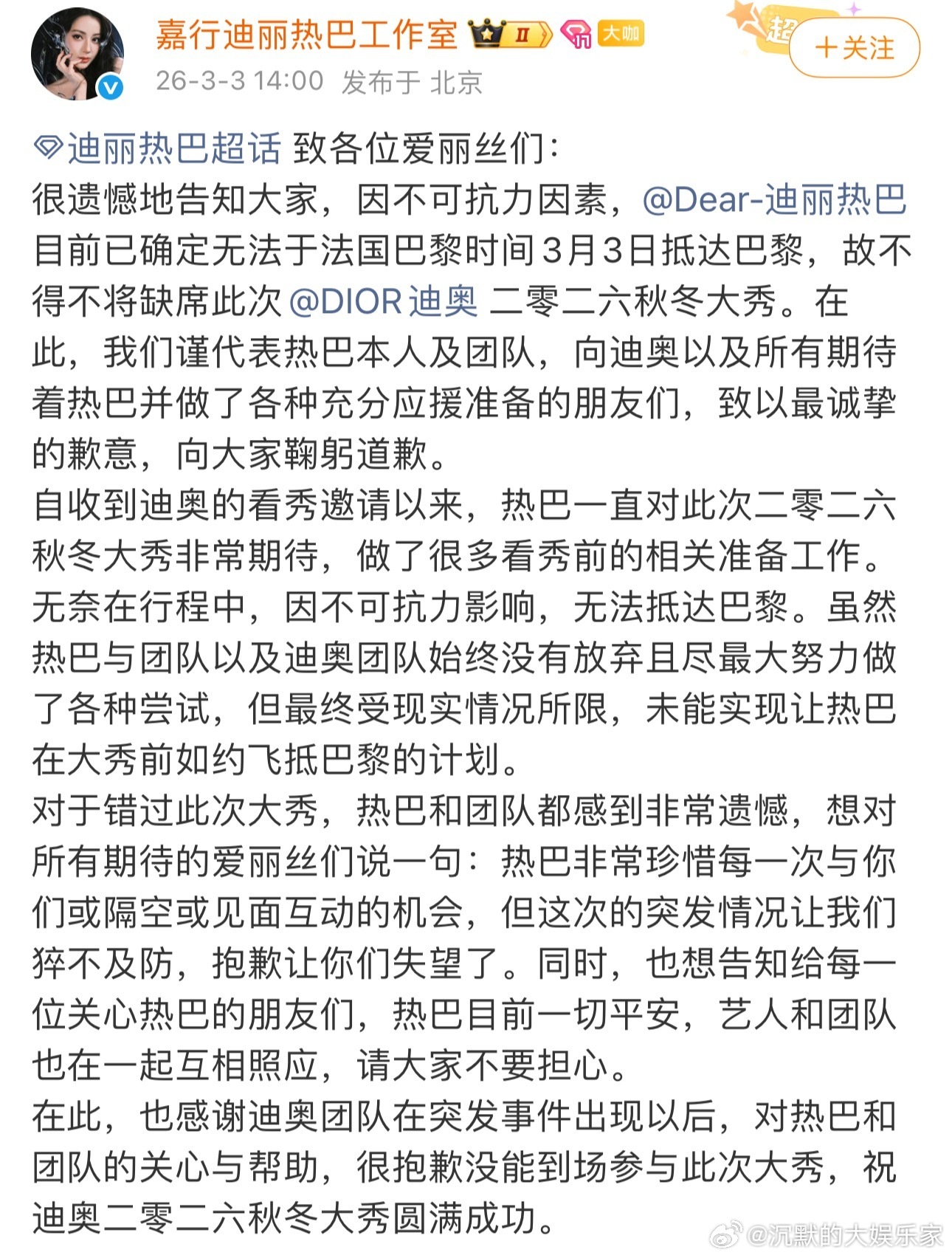 希望热巴早日平安回家,这样的公司难怪粉丝让她跑.路了。迪丽热巴 滞留迪拜