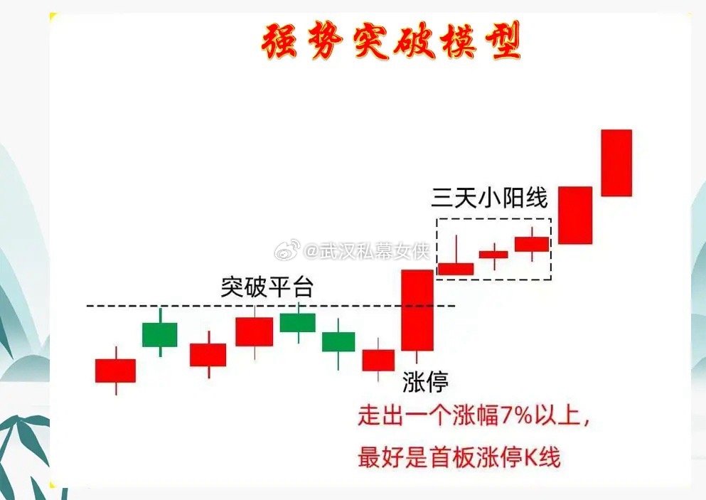其次呢,就是对于突破后,如何跟踪趋势,突破后拒绝大幅调整或者小阳线往上突破,就属于强势的表现。