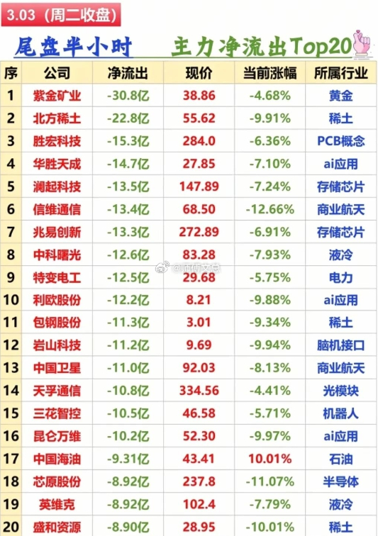 3月3日收盘资料:封单榜TOP曝光,尾盘半小时资金冰火两重天,流入流出TOP20+地板封单+涨停梯队,看懂主线脉络!