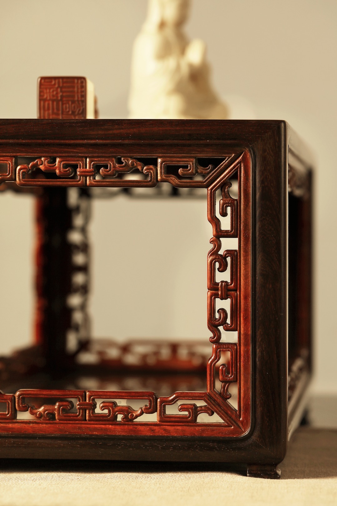 37.5*20*18.3cm 重1845g 大红酸枝【拐子纹】茶空间 收纳架几