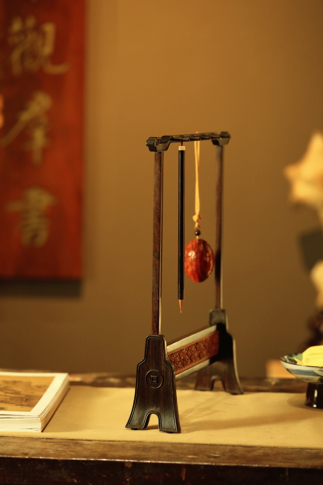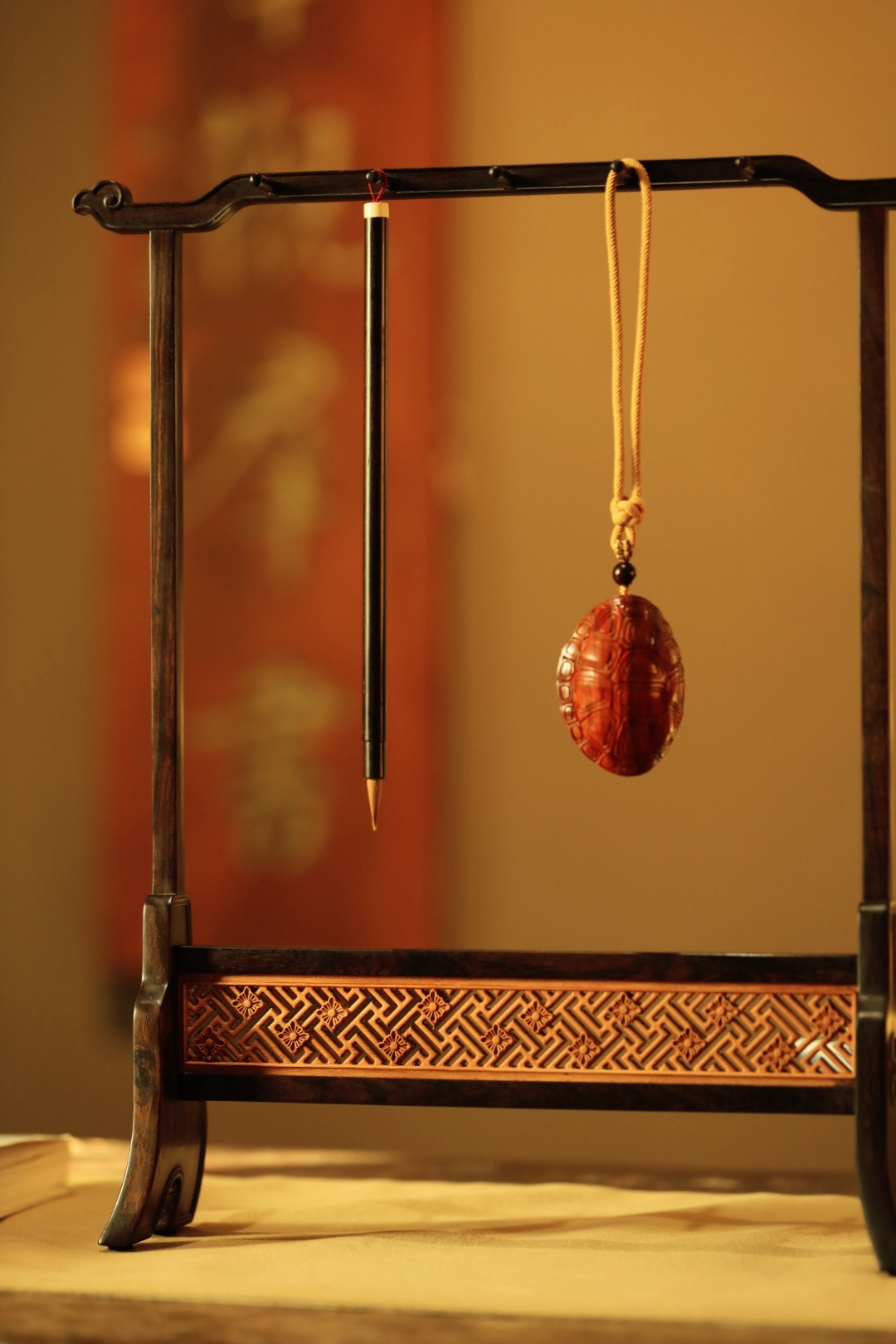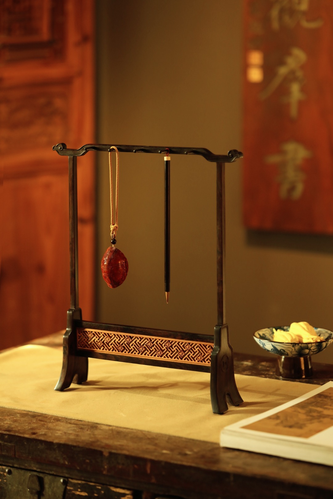 紫光檀x缅花【万字纹】笔挂
