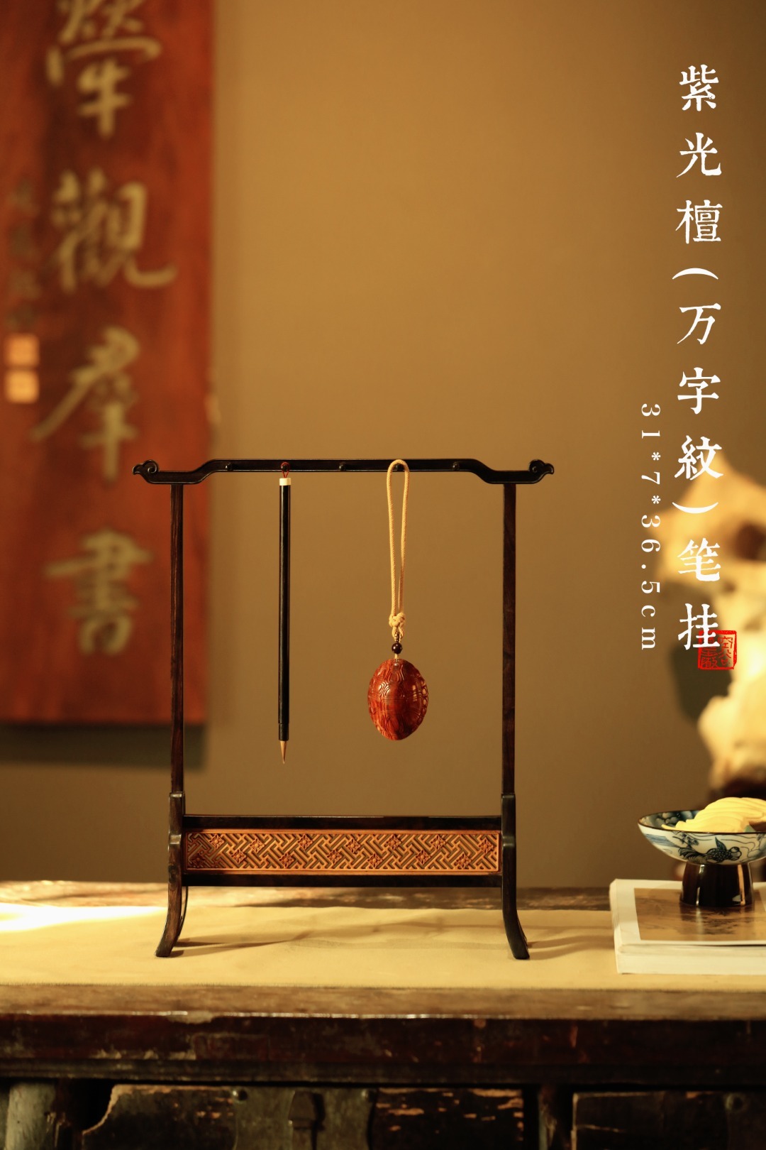 31*7*36.5cm 270g 紫光檀x缅花【万字纹】笔挂