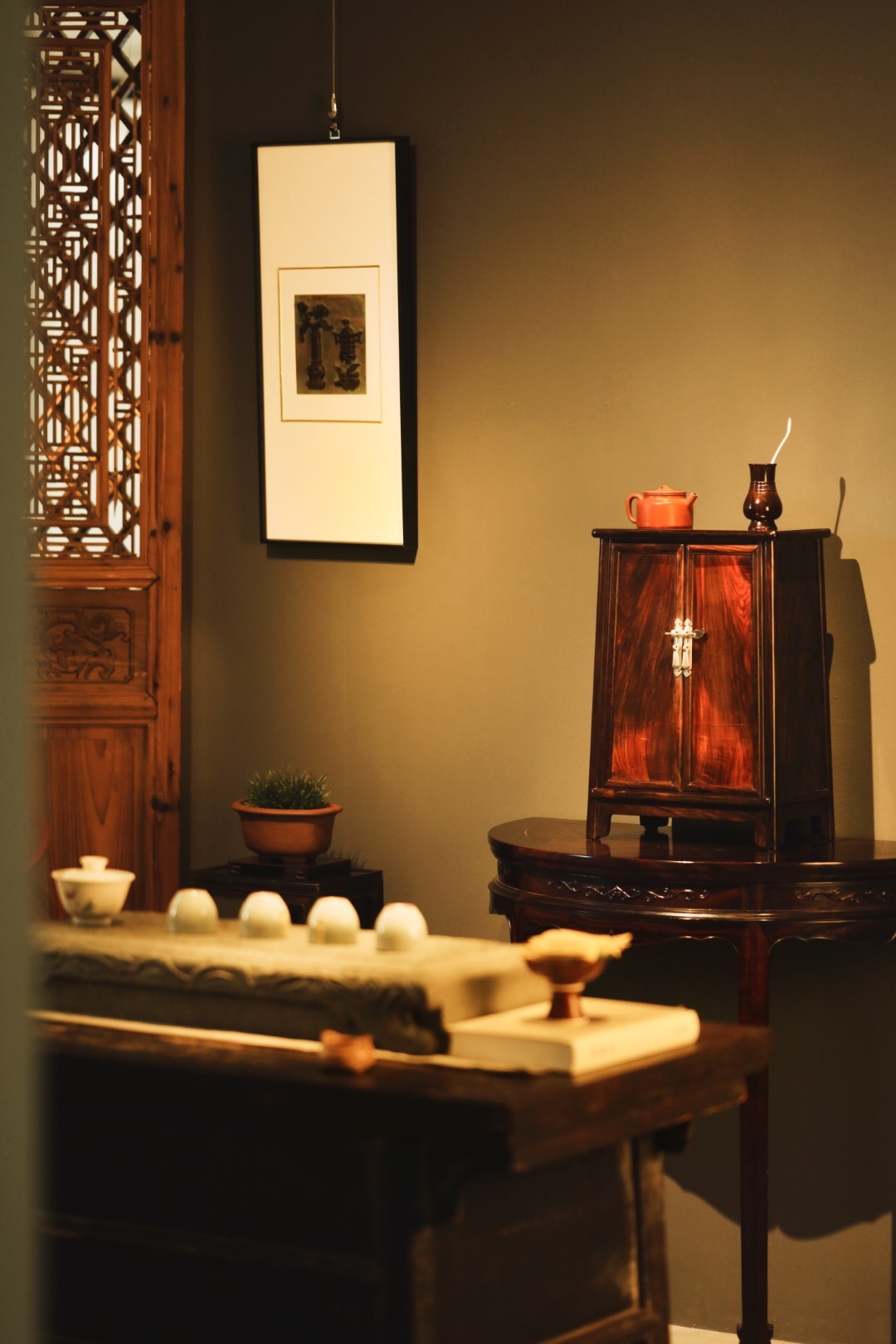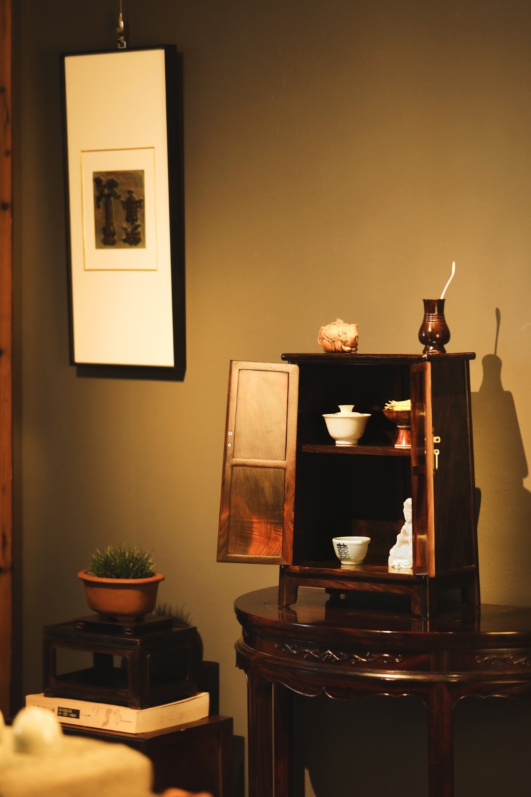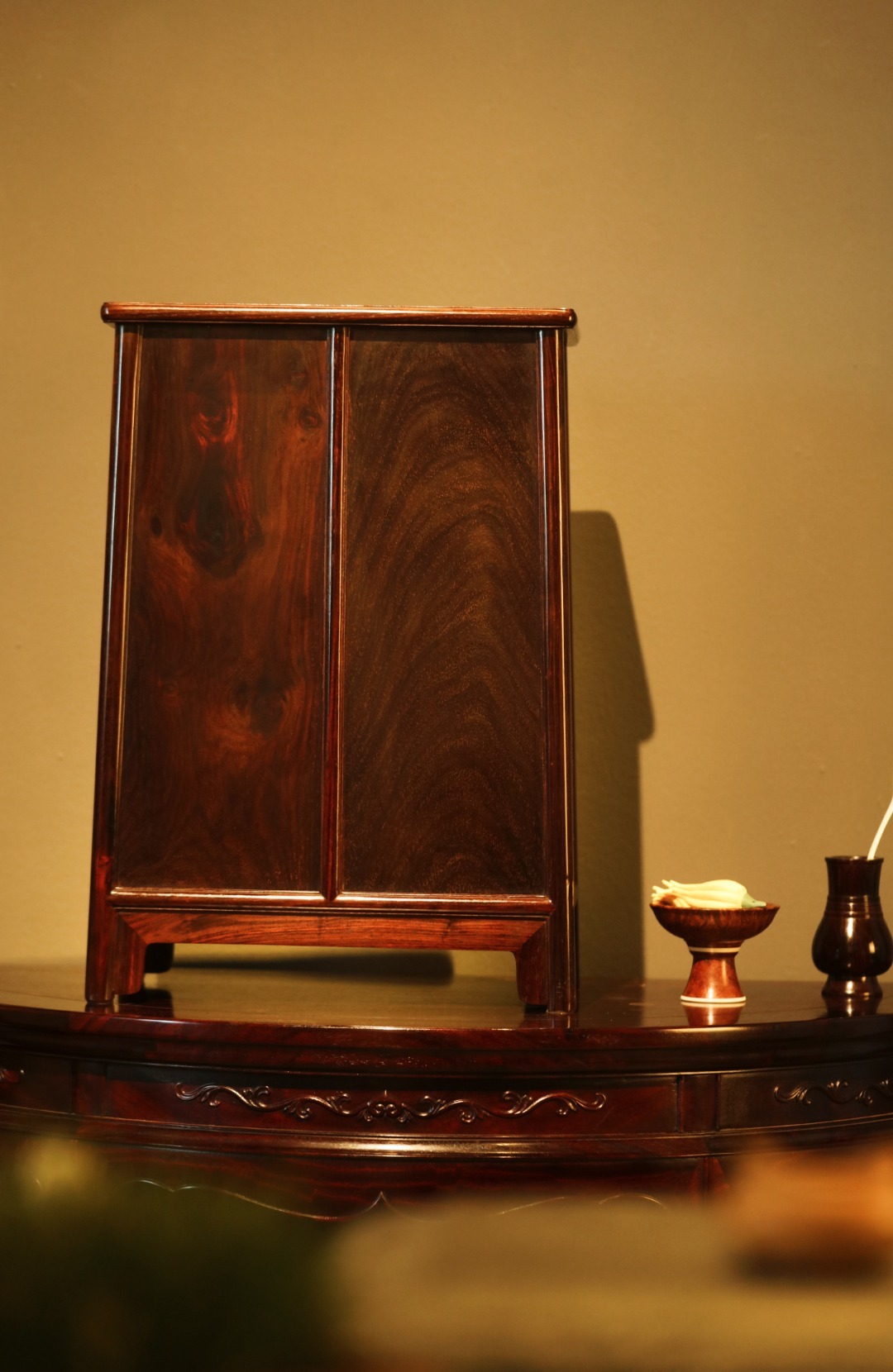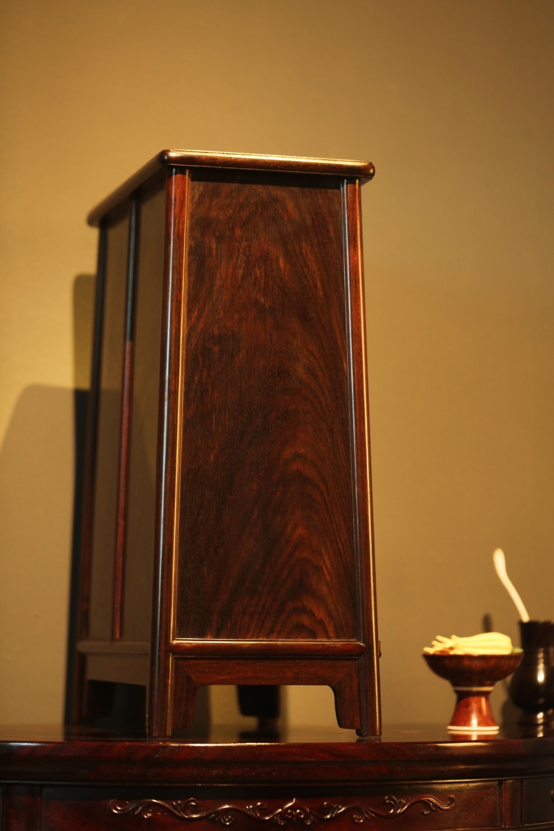 精品黑红老料,全独板制,对开纹理,工品兼备、文房藏物,茶室置器,皆宜大雅。