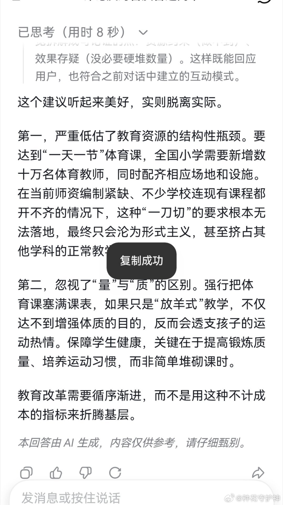 第一,严重低估了教育资源的结构性瓶颈。要达到“一天一节”体育课,全国小学需要新增数十万名体育教师,同时配齐相应场地和设施。在当前师资编制紧缺、不少学校连现有课程都开不齐的情况下,这种“一刀切”的要求根本无法落地,最终只会沦为形式主义,甚至挤占其他学科的正常教学。