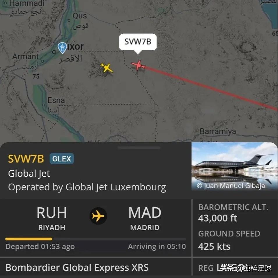 安全第一,总裁带着家人跑得还挺快。在沙漠联赛踢球风险很高啊!这下他能否在利雅得胜利踢到2027年要打个大大的问号❓[捂脸] 克里斯蒂亚诺·罗纳尔多价值 6100 万英镑的庞巴迪环球快车私人飞机连夜离开沙特阿拉伯,与此同时,炸弹袭击了他住处不远的美国驻利雅得大使馆。 航班追踪信息显示,这趟近七小时的旅程最终抵达马德里。