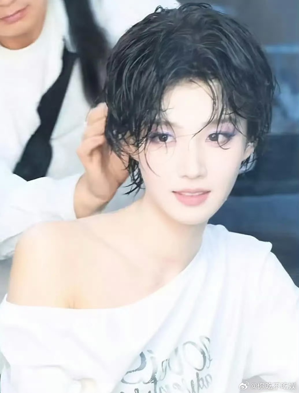 这居然是卢昱晓短发的样子,真的有种男孩子的感觉。