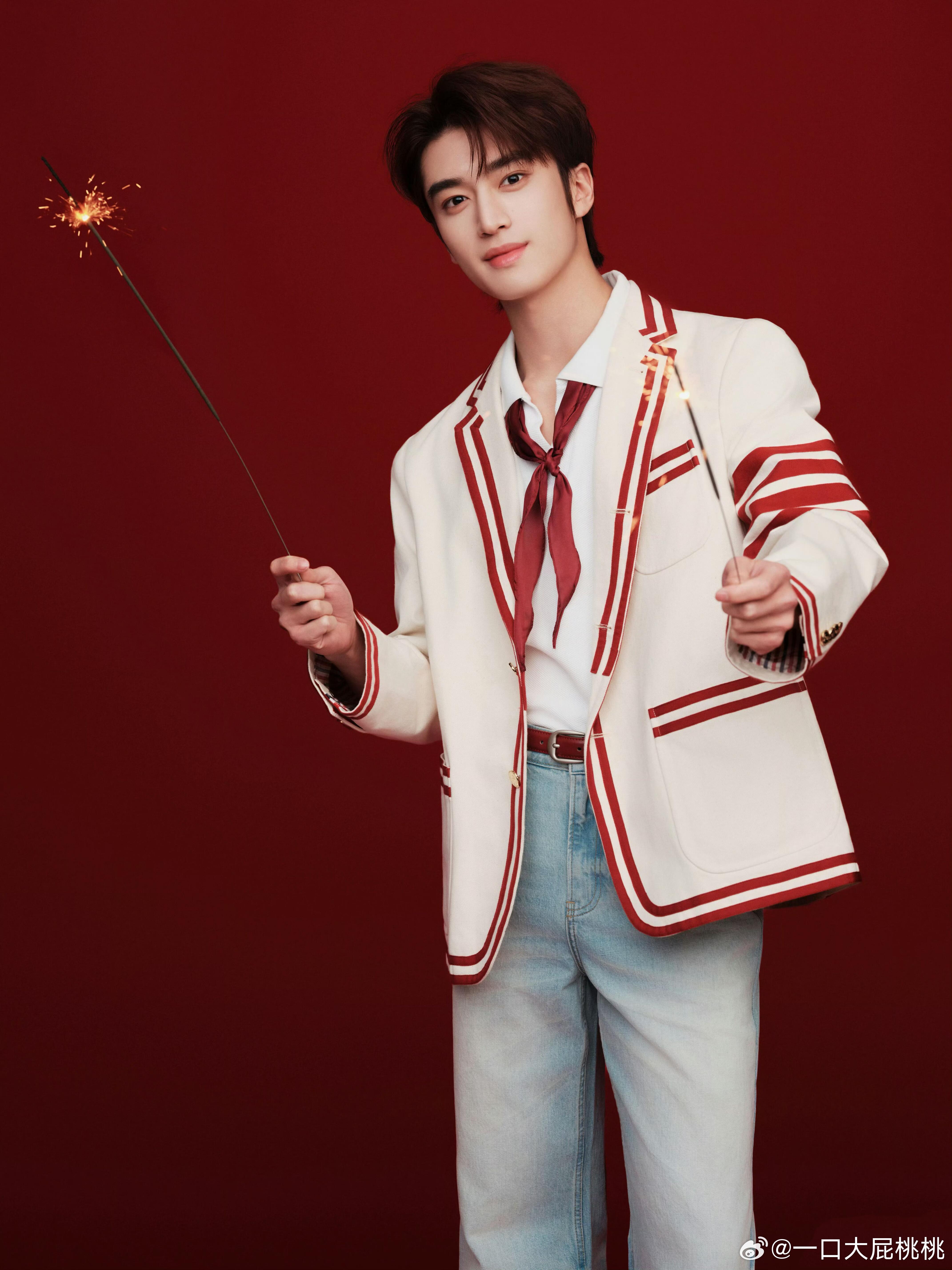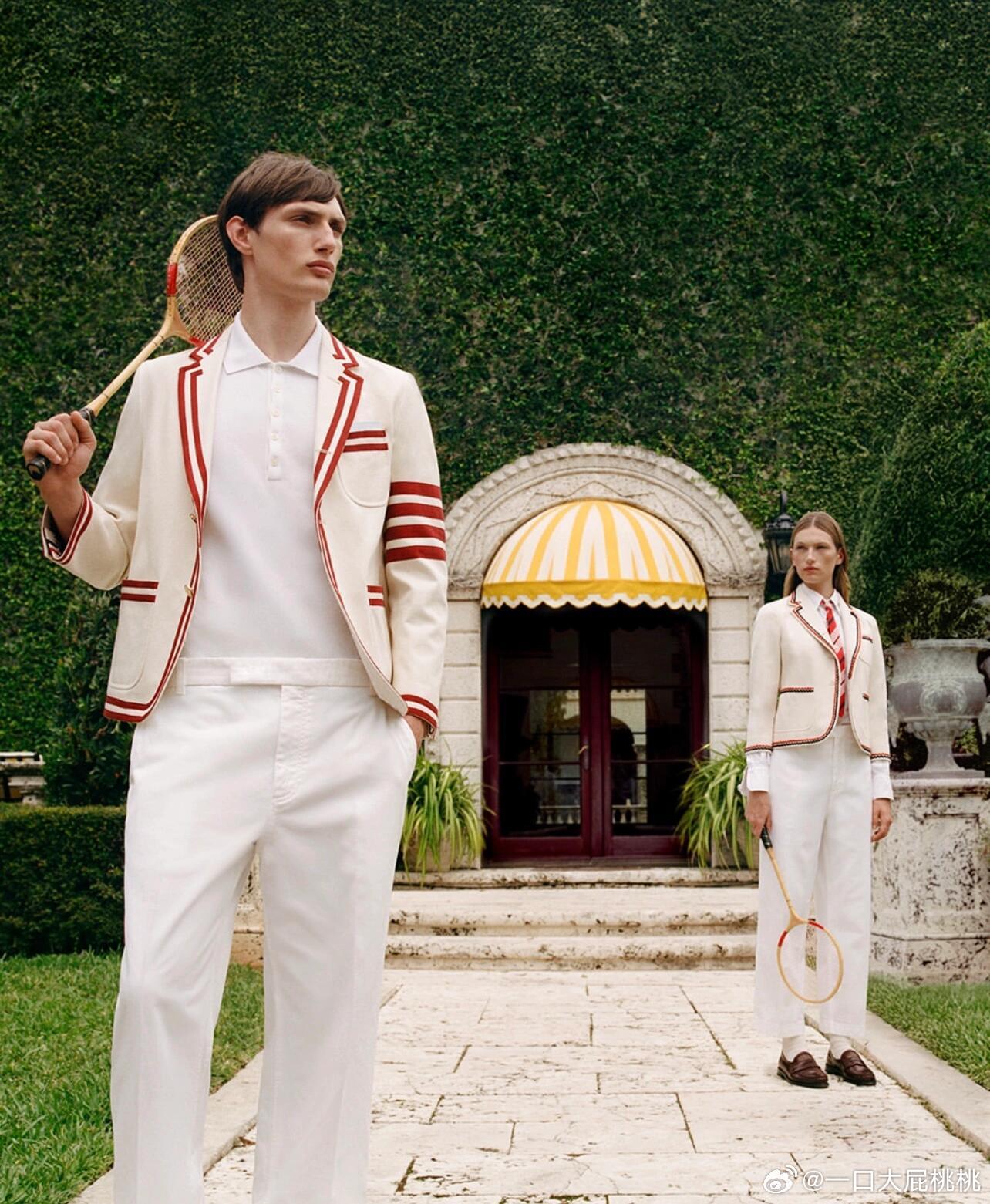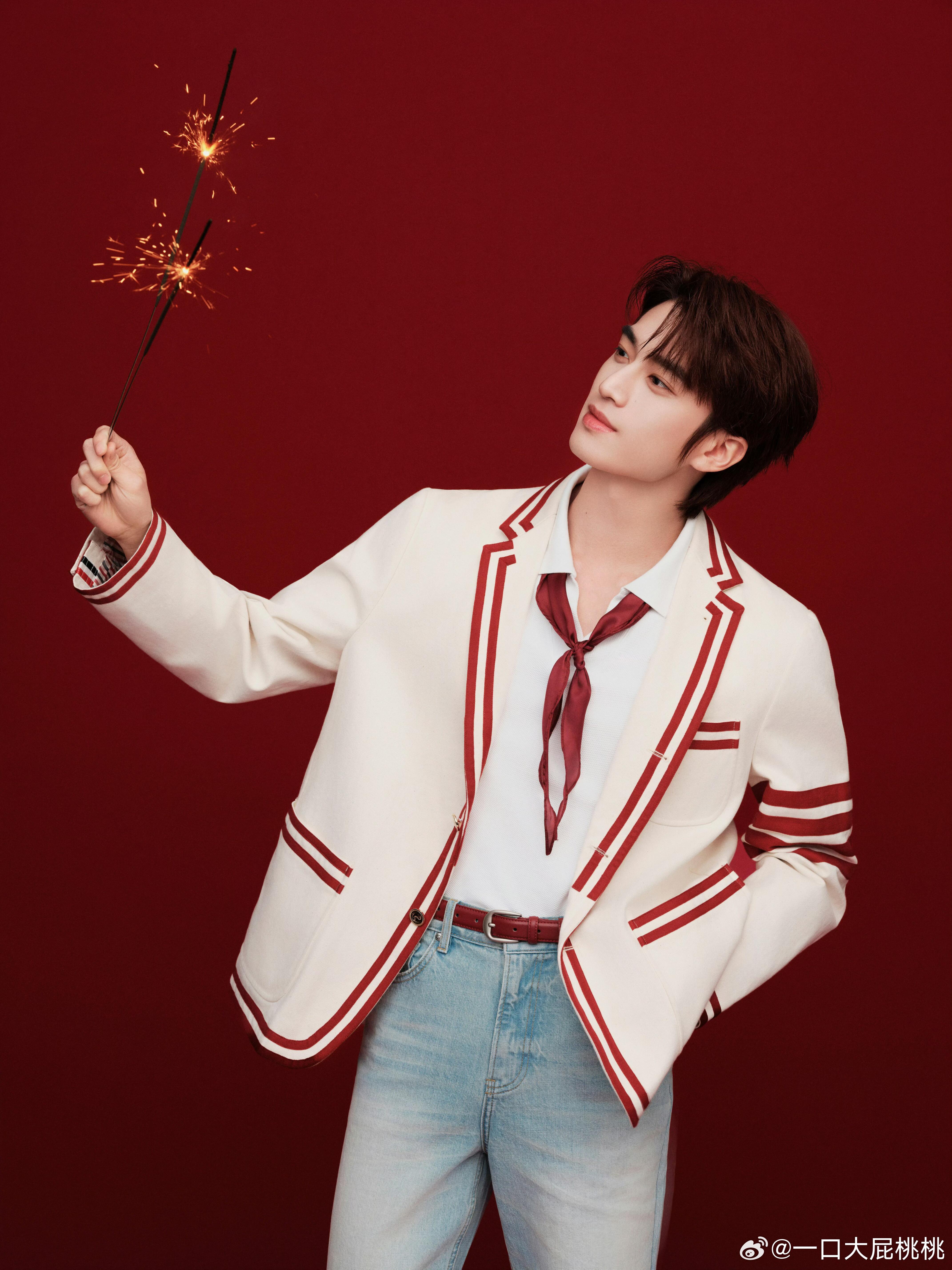 刚刚结束时装周行程的张康乐带来一组元宵节写真大片,上身Thom Browne 2025春夏系列,红白条纹西装外套搭配Roger VivierViv'Zag 运动鞋,复古的学院风!