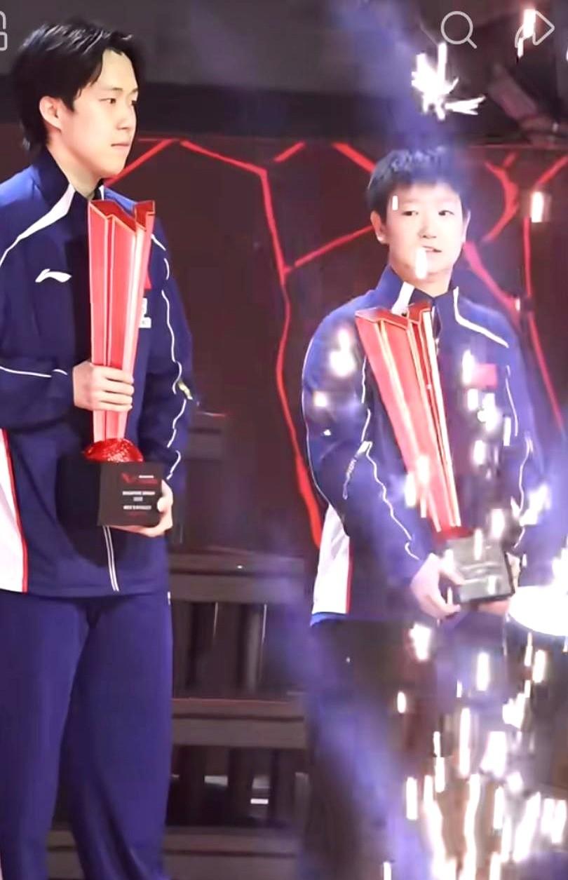 你敢信?孙颖莎那个冠军奖杯,足足11公斤! 颁奖台上还抱着,一下台,莎莎直接就给扛肩上走了! 这画面,真是绝了。 刚结束的新加坡大满贯,她拿了女单冠军,这已经是她第五个WTT大满贯单打头衔。 这奖杯看着就跟个大哑铃似的,真不是谁都能扛得动。男单冠军王楚钦也一样,俩人捧着这大家伙自拍,画面别提多逗了。 不得不说,这22斤的荣誉,还真就得是实力爆棚的他们才担得起。