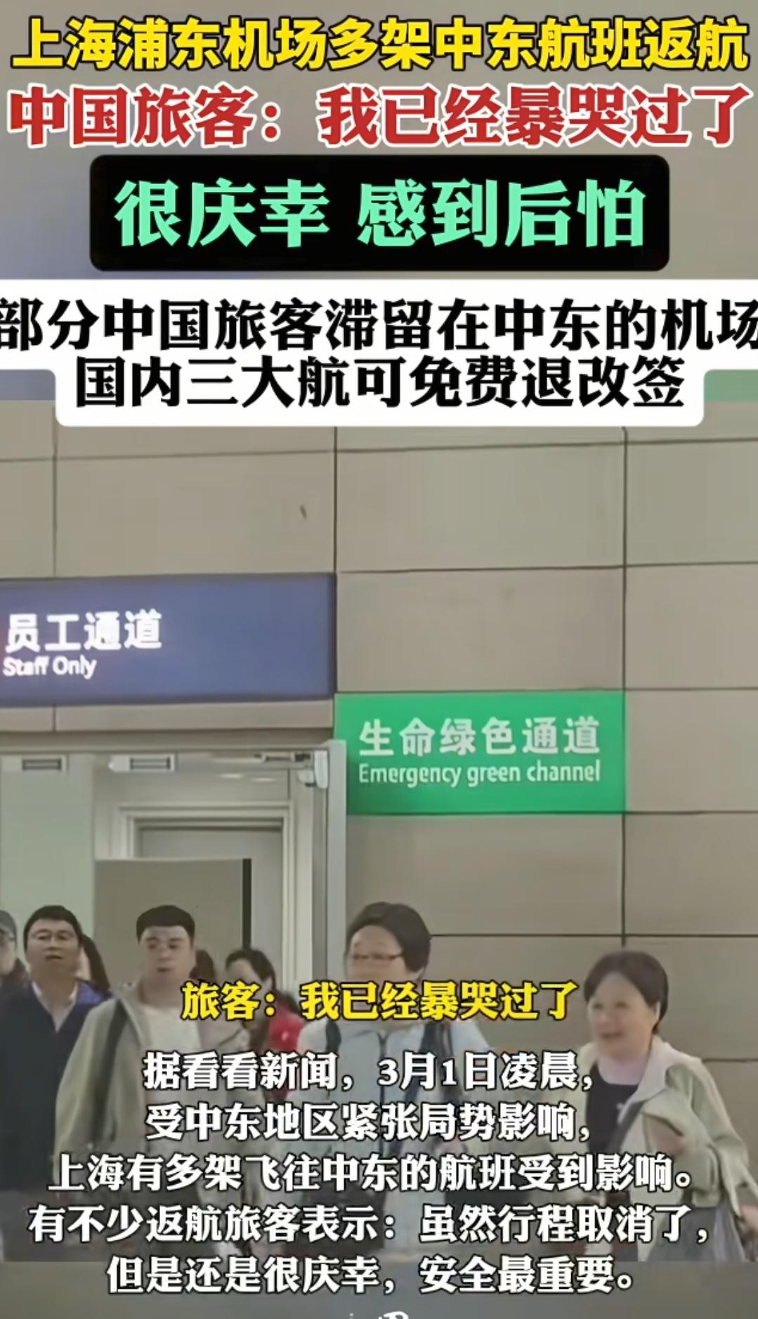 昨天深夜,上海浦东机场的到达大厅里,此起彼伏的叹气声压得人喘不过气。几架原本飞往中东的航班,在天上盘旋近七个小时后,最终还是原路折返,平稳降落在出发的跑道上。机舱与航站楼里,情绪交织在一起,有人默默掉泪,有人止不住叹息,还有人红着眼眶说,自己已经在高空彻底崩溃过一次。 从乘客的描述里能感受到,当时的气氛格外沉重。机长用低沉而稳定的语气广播,前方多个国家突然关闭民用领空,继续飞行没有任何可以安全降落的机场,为了全员安全,只能选择返航。MU265、MU237、MU269 三架宽体客机,载着七百多位旅客在万米高空绕圈,满心期待被瞬间击碎,换作谁都难以接受。 这场突如其来的空中折返,打乱的不只是一段行程,更是无数人原本安排妥当的生活。有人提前很久规划探亲,跨越半个地球只为见一面家人,落地时所有期盼都成了泡影。 有人带着重要合作奔赴目的地,合同、档期、供应链环环相扣,航班一停,整条链路都跟着停摆,背后牵扯的成本与心血,难以用数字衡量。 很多人不知道的是,这几架航班并非个例。受中东地区突发局势影响,伊朗、以色列、伊拉克等多国相继关闭领空,迪拜、阿布扎比、多哈等国际航空枢纽短暂停摆,全球数千架次航班被迫取消、返航或绕飞。 浦东机场在短时间内连续迎接返航航班,地面保障、海关、边检、航司工作人员全部在岗,连夜处理旅客安置与后续事宜,大厅里的每一声叹息背后,都藏着一场来不及反应的变动。 高空之上,机组的处置比外界想象得更细致。为了让旅客明白真实情况,机长没有模糊表述,而是直白告知领空关闭的原因,还临时开放机上网络,让大家能同步查看外界消息,减少未知带来的恐慌。近七个小时的折返航程,机组一遍遍安抚情绪,平稳操控飞机,把所有人安全带回,这是慌乱中最让人踏实的底气。 落地后的麻烦才刚刚开始。退改签、住宿安排、后续行程重新规划,每一项都需要耗费大量时间沟通。票务系统瞬间拥堵,咨询电话被打爆,机场问询柜台前始终排着长队,有人一遍遍刷新航班动态,有人对着手机反复确认消息,每个人都在试图把破碎的计划重新拼凑起来。 更让人揪心的是,还有不少中国旅客此刻正滞留在中东当地机场。那里的航班大面积停飞,改签队伍蜿蜒数百米,临时安置资源紧张,他们面临的不确定性,比返航旅客更多。中国驻外使领馆已经发布安全提醒,呼吁公民远离敏感区域,密切关注航班信息,可在局势未明的情况下,再稳妥的提醒,也抵不住归家心切。 这场民航大范围震荡,也悄悄影响着更远的地方。中东空域是亚欧航线的重要通道,如今被迫关闭,大量洲际航班只能绕道非洲或中亚,飞行时间普遍增加数小时,燃油成本、机组排班、运力调配全线承压,机票价格与物流时效随之波动,普通人的出行成本,正在被悄悄抬高。 没人愿意遇到航班返航,可在安全面前,所有计划都要让步。旅客们崩溃、落泪、无奈,却也在落地后松一口气,平安回来,比什么都重要。机场的灯光彻夜未熄,工作人员与旅客一起熬着夜,试图把这场突发变动带来的影响降到最低。 生活常常就是这样,上一秒还在奔赴目的地,下一秒就可能被迫掉头。远方的局势变动,会以最直接的方式落在普通人的行程单上。这一夜浦东机场的叹息,不只是对行程落空的遗憾,更是对安稳出行的渴望。 你觉得遇到这种突发返航,最应该优先保障旅客的哪些权益?如果是你,长途飞行突然折返,会怎么调整自己的心情和后续安排?