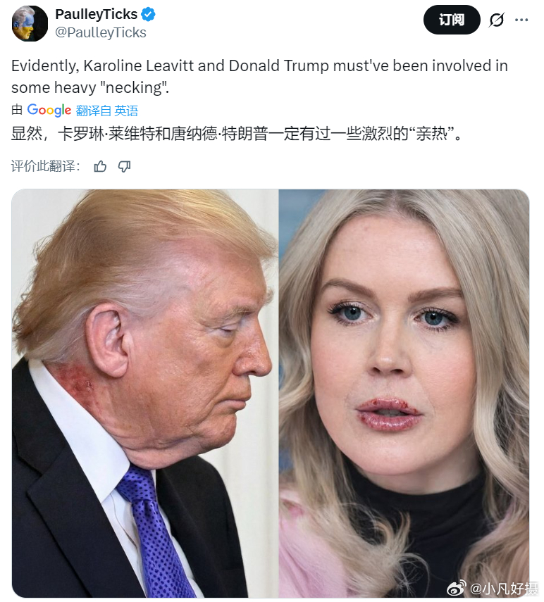 一名X博主称:“卡罗琳·莱维特和唐纳德·特朗普一定有过一些激烈的‘亲热’。”海外新鲜事黄媒不会说的真相