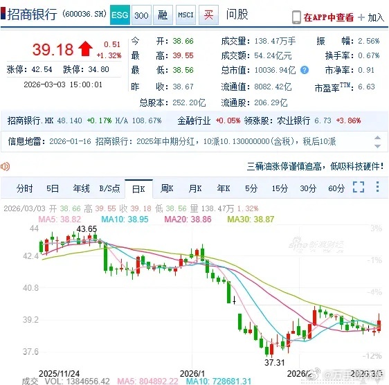 目前市净率0.91,市盈率6.65倍,说明有一定市场关注度。招行如果股价持续上涨,就不会有每年5%的股息率,股价越高,股息率越少,长远只要企业有持续稳健的盈利,企业就会向好发展,但现在虽然股价下跌,但到合理区域就有增股权和分红复投的机会。