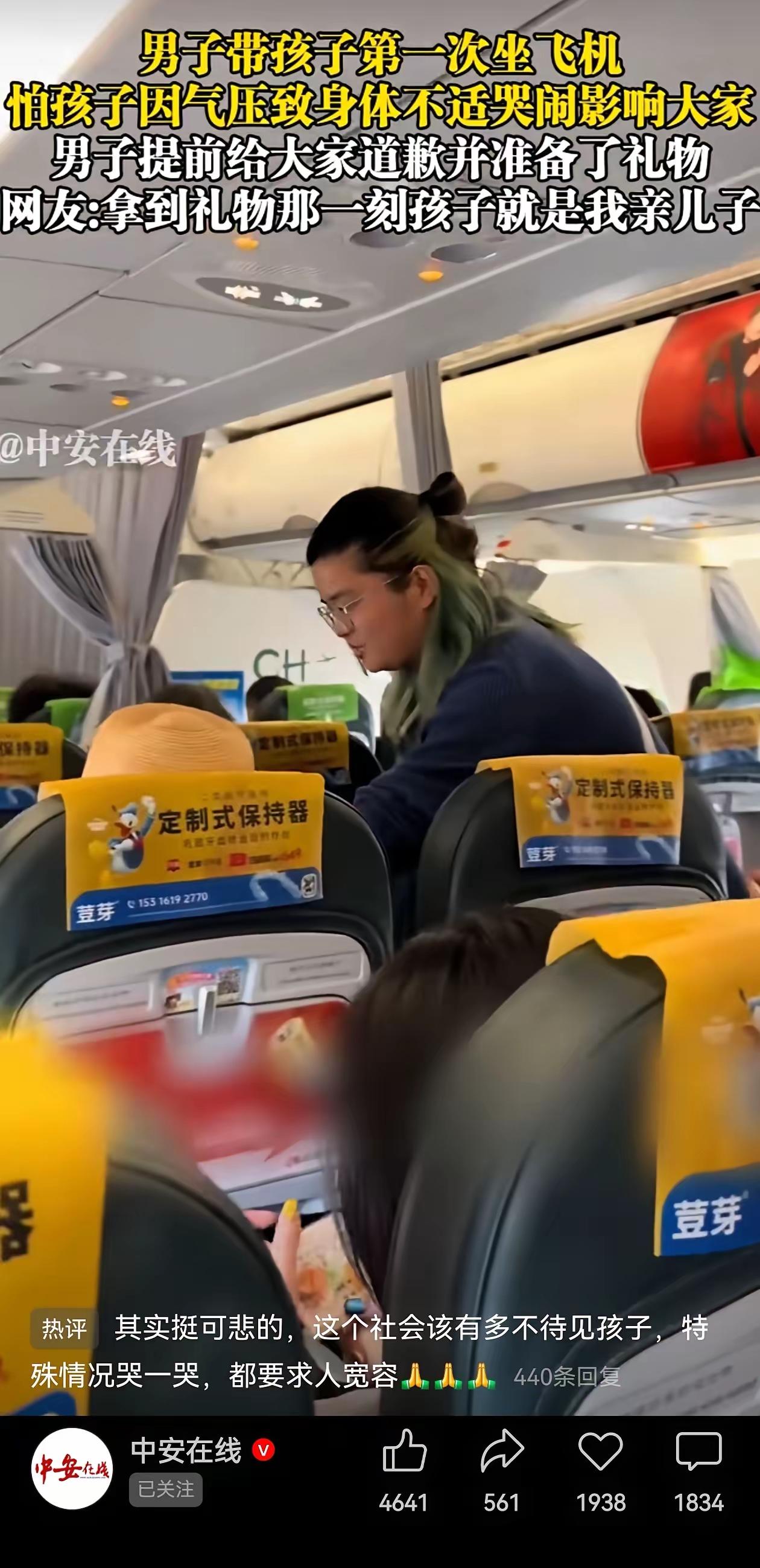 给这位爸爸竖个大拇指!3月2号广东的一架飞机上,在飞机起飞之前,一位年轻的爸爸站起来对所有的乘客说:“因为我小孩今天第一次坐飞机,我不知道他上飞机可能气压增多,害怕他哭闹,如果他打扰到大家了,希望大家能够谅解一下,然后我先跟大家说声抱歉,然后我这边准备了一些小礼物,希望大家能够多多包容一下!谢谢谢谢!” 机舱里的细碎交谈声慢慢轻了下来,乘客们纷纷看向这位略带局促的父亲,脸上没有不耐,只有温和的动容。低龄孩子第一次坐飞机,对密闭空间、机身颠簸都会产生本能抗拒,气压变化带来的耳部不适,更会让孩子用哭闹表达情绪。这位父亲提前预判到所有可能,他没有把孩子年幼当作免罚金牌,也没有等矛盾爆发才慌乱补救。 他准备的小礼物多是耳塞、糖果,成本不高,承载的却是实打实的歉意。他清楚公共空间里,每个人都有享受安静行程的权利,孩子的无心打扰,需要家长主动承担责任。这份清醒与自觉,在日常出行中显得格外珍贵。 飞机、高铁、商场这些公共场所,孩子哭闹引发的摩擦时有发生。有人觉得孩子小不必计较,也有人觉得家长疏于引导影响他人,两种情绪碰撞,很容易让小事升级成争执。没人会苛责一个不懂事的孩子,大家真正在意的,是家长缺少换位思考的态度。 这位爸爸没有回避问题,他主动起身致歉,把尊重递到每一位乘客面前。乘客们也用包容接住这份善意,有人轻声安慰,有人点头示意,机舱里的氛围瞬间变得柔软。飞行途中,孩子在家长安抚下全程安稳,没有出现预想中的哭闹,一趟普通航程,因为双向的体谅变得格外暖心。 真正的教养,从来都体现在细微之处。它不要求完美,只要求懂得顾及他人。这位父亲没有惊天举动,只是在起飞前多走一步、多说一句,就用行动诠释了什么是体面与担当。他不仅化解了潜在的冲突,也给孩子做了最好的榜样,让孩子在潜移默化中学会尊重与体谅。 这件事能快速刷屏,是因为它戳中了无数人对公共文明的期待。快节奏的生活里,大家都有疲惫与烦躁,一点主动的善意,就能化解大部分隔阂。带娃出行的家长多一份责任,同行的陌生人多一份包容,出行路上的不愉快就会少很多。 我们不必苛求所有人都准备礼物,一句真诚的抱歉、一份主动的体谅,就足够温暖人心。公共空间的美好,从来都是靠每个人的小善意堆砌而成,这样的举动,值得被更多人看见、被更多人学习。 各位读者你们怎么看?欢迎在评论区讨论。
