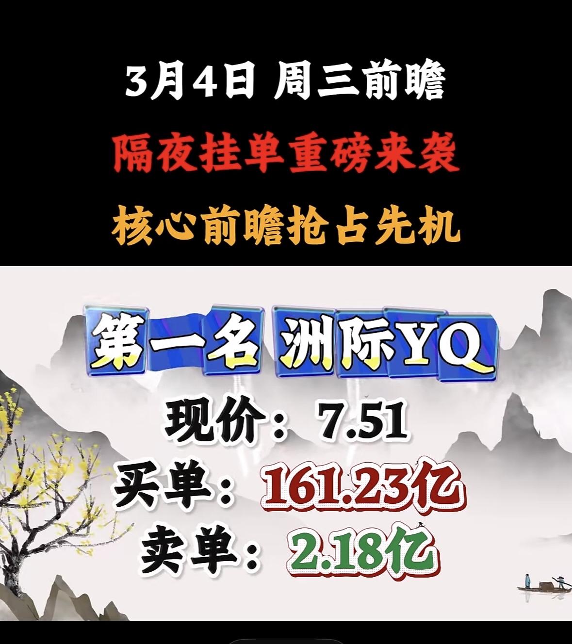 3月4日暗盘隔夜挂单前8名个股揭晓, 准油股份股第八名走势分析。 "周三前瞻隔夜单火爆,洲际领跑,买单强势碾压卖单,现价波动引关注。"