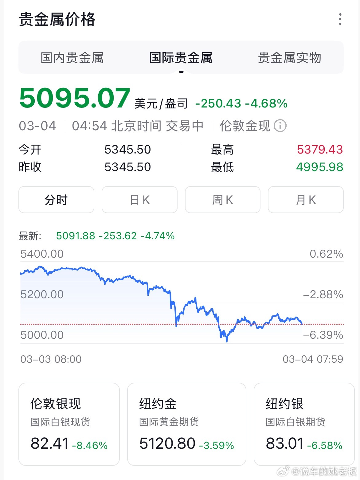 金价银价深夜再次跳水,金价已经从5400美元跌破到5100美元以下,这也太吓人了吧!金价银价断崖式跳水