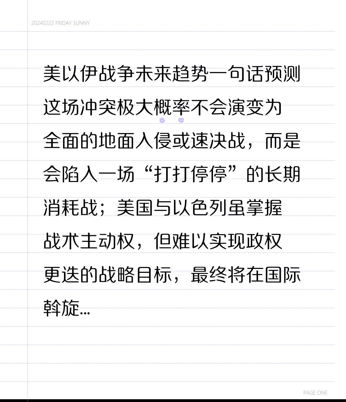 美以伊战争未来趋势一句话预测 这场冲突极大概率不会演变为全面的地面入侵或速决战,而是会陷入一场“打打停停”的长期消耗战;美国与以色列虽掌握战术主动权,但难以实现政权更迭的战略目标,最终将在国际斡旋与内部压力下走向“有限战争”后的僵持与谈判。
