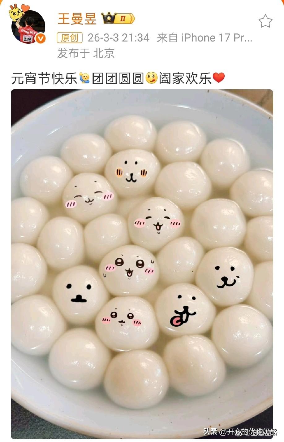 王曼昱祝大家元宵节快乐,快乐小汤圆很像小白球。 曼昱大满贯归来,没有发感谢文和总结,只在昨晚元宵节祝大家团团圆圆。 曼昱很贴心,平时很少更新,上个微博停留在新年快乐,但传统节日都会给大家送祝福。 今年开年三场比赛,对王曼昱来说都有遗憾,多哈冠军赛不敌韩莹止步八强,亚洲杯没能卫冕冠军,大满贯女单还是亚军。 王曼昱去年太累了,连续打比赛和伤病,导致身体和状态不是最好,但愿接下来好好调整,去年重庆冠军赛因伤退赛,今年重庆冠军赛期待圆满。 加油曼昱,期待你屏蔽所有,只专注快乐乒乓,每一站都能健康完赛。 图片来自网络侵权可删。