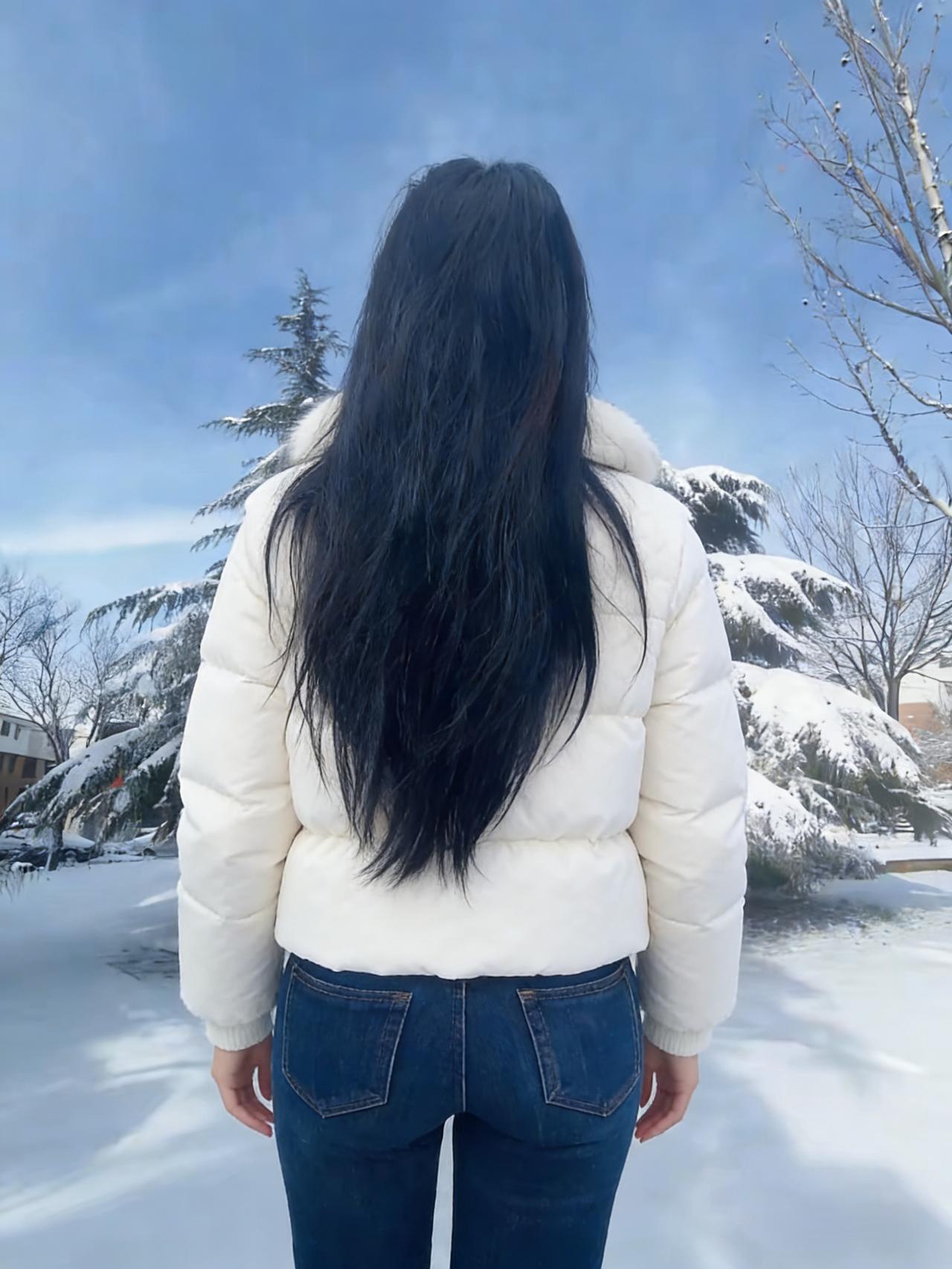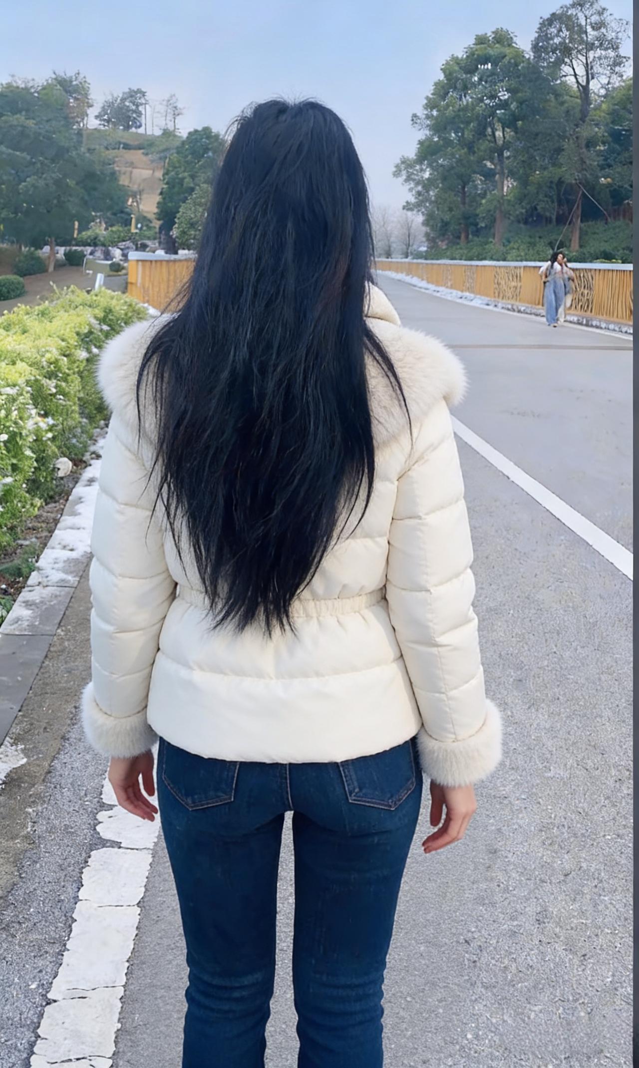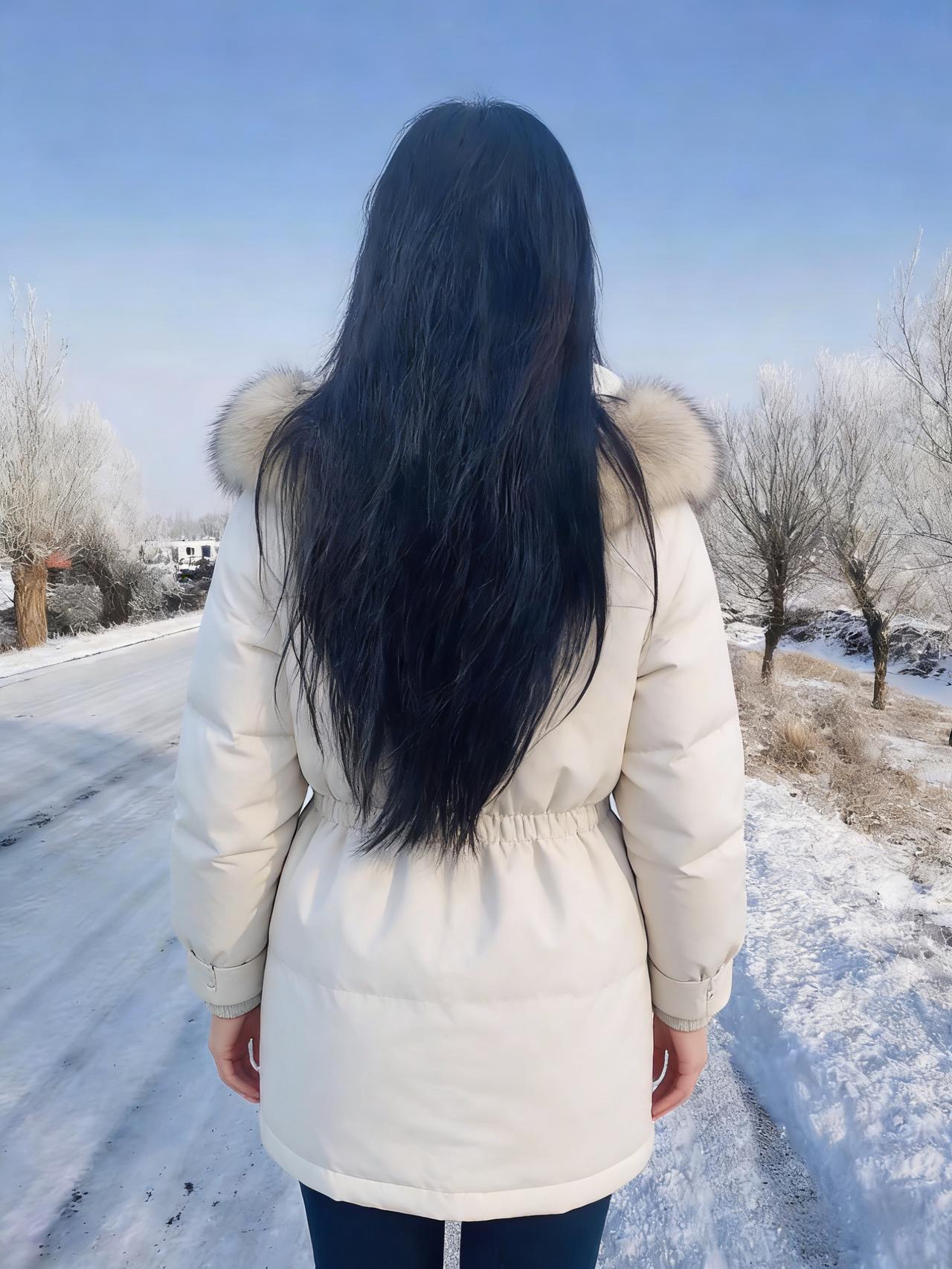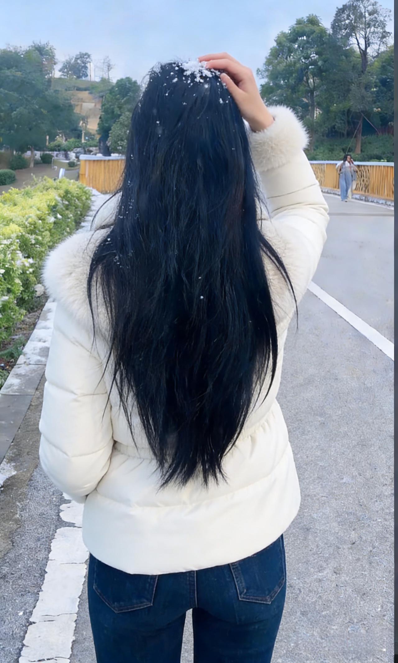 雪把世界揉成蓬松的棉团 你的背影是雪色里最柔软的笔触 黑长发垂落,像未融的夜 坠在白羽绒服的肩头,划开一片素白 ~ 风掠过雪地,卷起细碎的雪沫 你站着,不说话,成了冬的静物 牛仔裤裹着的腿,扎根在雪地里 像一棵年轻的树,枝桠是垂落的发 ~ 远处的树挂着雪,和你并肩站着 雪落在你的发梢,你没察觉 手指或许插在口袋里,或许交叠在身后 体温把寒冷隔在一层布料之外 ~ 这片雪野因你有了温度 背影是未说出口的诗,字里行间都是静 雪还在下,你的轮廓在雪雾里模糊又清晰 像雪融化前,最温柔的定格 ~ 你转身也好,不转身也罢 雪地里的这帧背影,已是冬的落款 是雪落在人间,最妥帖的模样 是风掠过荒原,最柔软的停靠