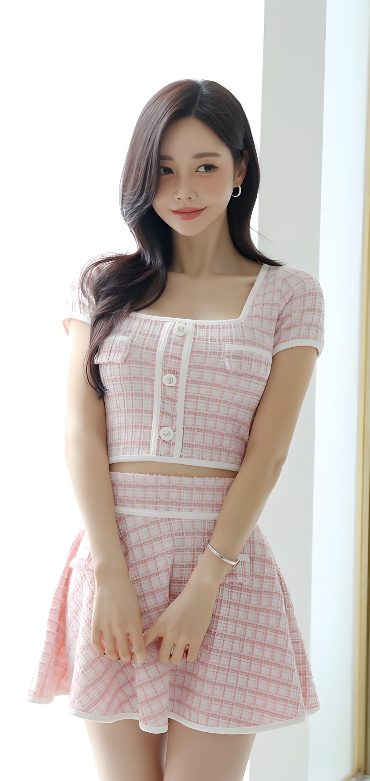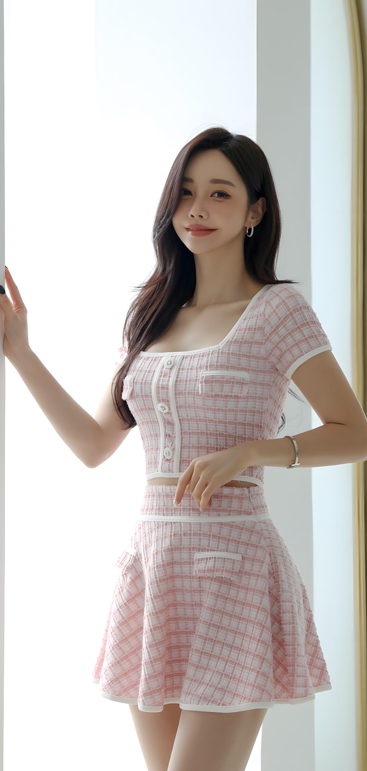 甜美少女风,粉色格子裙,清新可爱,元气满满!💕👗👠