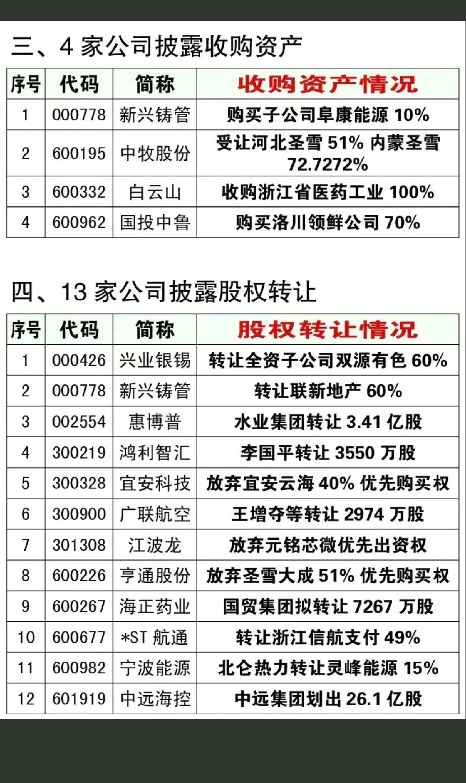 3月4日,星期三A股资产重组、实控变更、股权转让公告!!! 7家公司披露资产重组事项,中成股份购买中技100%,后市值得高看一眼;爱克股份购买东莞硅翔进展,后市值得期待;2家公司披露实控人变更;4家公司披露收购资产;13家公司披露股权转让!!!