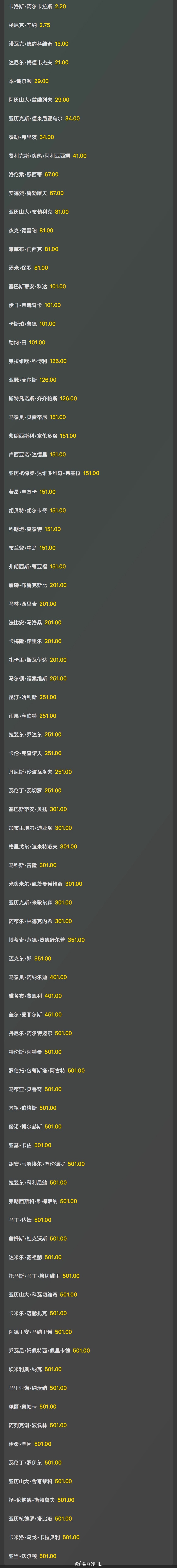 阿尔卡拉斯:2.2辛纳:2.75德约科维奇:13梅德维杰夫:21谢尔顿、兹维列夫:29……