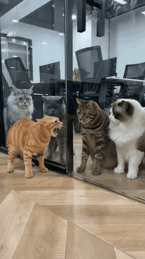 开门前: 橘猫:瞅啥瞅?找揍是不!😤 开门后: 橘猫:对不起对不起,我刚才
