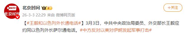 以色列主动找中国谈 北京时间3月3日,以色列终于坐不住了,一通电话打到了中国。 而且这通电话是主动打过来的,中国外交部长王毅听取了以色列外长萨尔的通报,包括介绍当前局势以及未来走向,这也为接下来和平带来了更多可能。 以色列它这段时间一直在和周边国家有摩擦,尤其是和伊朗的矛盾,最近闹得特别厉害。就在以色列给中国打电话的前一天,中国外长王毅刚和伊朗外长通了电话,伊朗方面也向中国通报了地区局势,还希望中国能发挥作用,主持公道,避免局势进一步升级。 以色列心里很清楚,中国在中东地区的影响力越来越大,而且中国一直坚持公正立场,不偏袒任何一方,这些年也一直在努力推动中东地区的和平稳定,不管是巴以问题,还是伊以矛盾,中国都始终主张通过对话协商解决,不赞成用武力解决问题。 以前以色列可能觉得有美国撑腰,不用太在意其他国家的态度,但现在情况不一样了,局势越来越复杂,光靠美国,已经解决不了眼前的麻烦。 大家都知道,巴以冲突闹了很多年,一直没得到彻底解决,根本原因就是“两国方案”没实现,以色列已经建立了自己的国家,但巴勒斯坦还没能独立建国。 最近这几年,以色列还在不断扩张定居点,在约旦河西岸新建了很多犹太人定居点,3年时间里定居点数量增加了50%,还不断蚕食巴勒斯坦的领土,这也让巴以之间的矛盾越来越深,国际社会很多国家都反对以色列的这种做法,中国也多次呼吁以色列停止定居点活动,停止破坏巴勒斯坦的治理基础。 除此之外,以色列和伊朗的矛盾最近也急剧升级,伊朗发起了针对以色列核心目标的反击行动,还袭击了美国在中东盟友的使馆,让美国也陷入了困境。 美国总统宣称要采取报复行动,伊朗方面也放出话来,不惜进行长期战争,甚至誓言不让一滴石油通过霍尔木兹海峡,这种剑拔弩张的局面,让以色列也感到了压力,它担心战火进一步蔓延,最后自己会陷入孤立无援的境地。 所以这次以色列主动给中国打电话,其实有自己的想法。一方面,它想向中国介绍自己的立场,让中国了解它的处境和诉求,希望得到中国的理解;另一方面,它也想知道中国对当前局势的看法,毕竟中国一直主张劝和促谈,在国际社会上有很高的威望,以色列希望中国能发挥建设性作用,帮助缓和地区局势,避免矛盾进一步升级。 在电话里,王毅外长在听取了萨尔的通报后,也明确表明了中国的立场。王毅外长说,中方一贯主张通过对话协商解决国际和地区热点问题,各方都应该遵守联合国宪章的宗旨和原则,不能在国际关系中使用或威胁使用武力,这其实也符合以色列的根本利益。 王毅外长还特别强调,中方反对以色列和美国对伊朗发起军事打击,因为武力解决不了问题,反而会带来更多新的问题和严重的后遗症,军事实力的真正价值不是在战场上,而是在预防战争。 同时,王毅外长也要求以色列采取切实措施,确保中国在以色列的人员和机构安全,萨尔也明确表示,以色列高度重视这件事,会全力保护好中国的人员和机构安全。 这也能看出来,以色列这次主动打电话,确实是有诚意的,不是走个过场,它也清楚,和中国保持良好的沟通,对它自身也有好处。 可能有人会说,以色列以前不是一直跟着美国走吗?怎么现在主动找中国了?其实这就是现实,现在的国际形势已经不一样了,不再是某一个国家说了算,大国之间的合作和沟通越来越重要。 以色列之前一直依赖美国,但美国最近在中东的影响力有所下降,而且美国的一些做法,也没能真正解决以色列的安全问题,反而让地区局势越来越紧张。 中国在中东问题上,一直坚持公正公正的立场,不偏袒任何一方,既理解以色列的安全关切,也支持巴勒斯坦人民恢复民族合法权利的正义事业。 这些年,中国一直在推动加沙实现全面持久停火,呼吁各方停止袭击行为,开放过境点,保障人道物资的准入,还支持“巴人治巴”原则,推动落实“两国方案”,这些努力,国际社会都看在眼里,以色列也不例外。 这次以色列主动给中国打电话,虽然只是一次普通的外交通话,但也能反映出很多问题。它说明,中国在国际舞台上的地位越来越高,影响力越来越大,越来越多的国家意识到,中国是推动世界和平与发展的重要力量。 同时,这也说明,中东地区的局势已经到了必须通过对话协商解决的地步,武力对抗只能让矛盾越来越深,只有坐下来谈判,才能找到解决问题的办法。