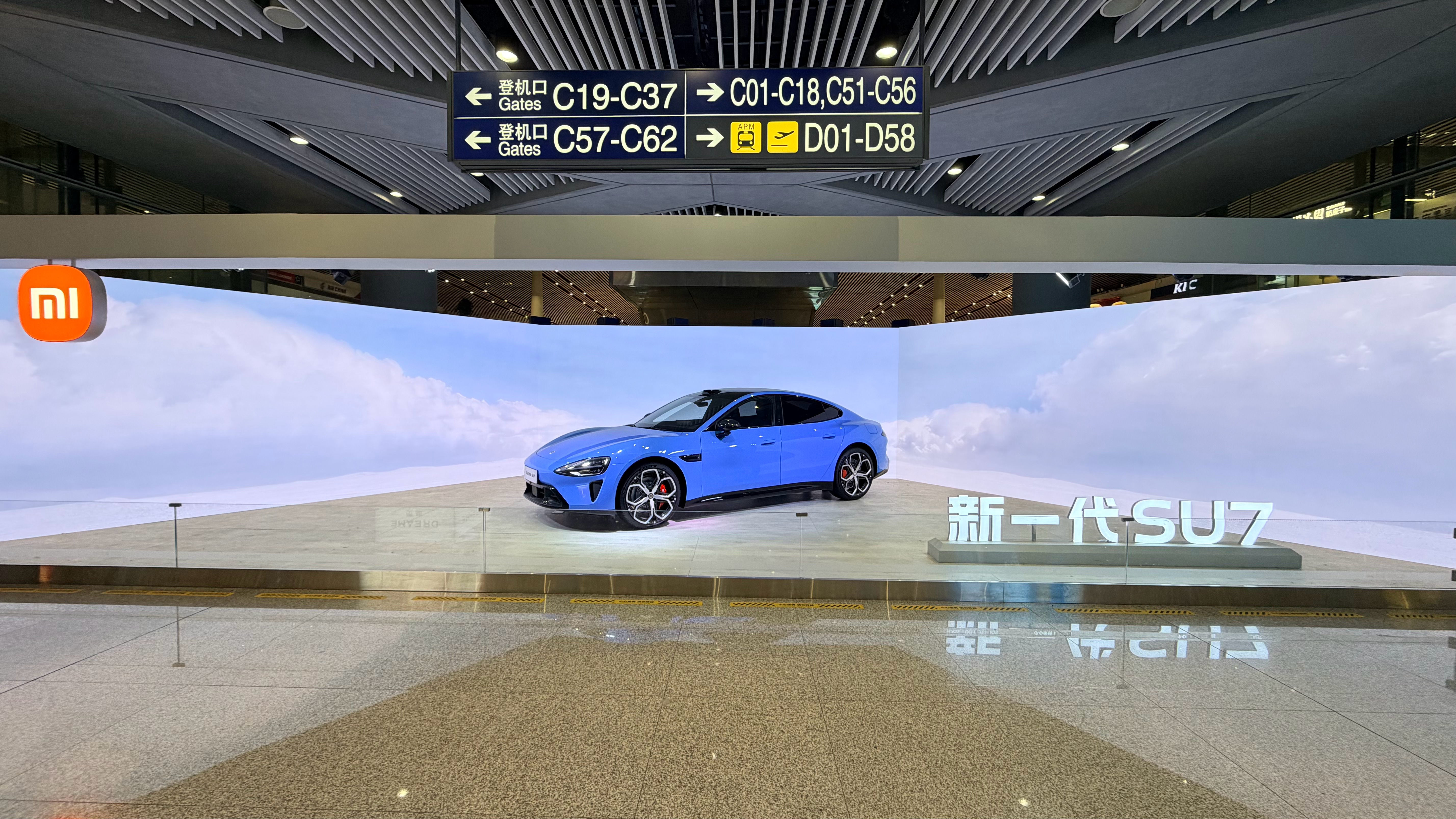 在首都机场T3航站楼安检之后的C位,看到了小米全新一代 SU7。 这个位置之前我没记错的话,放过沃尔沃、路虎,小米也是好起来了不停地有老外过来合影,怎么说呢,还挺为中国品牌自豪的。小米su7