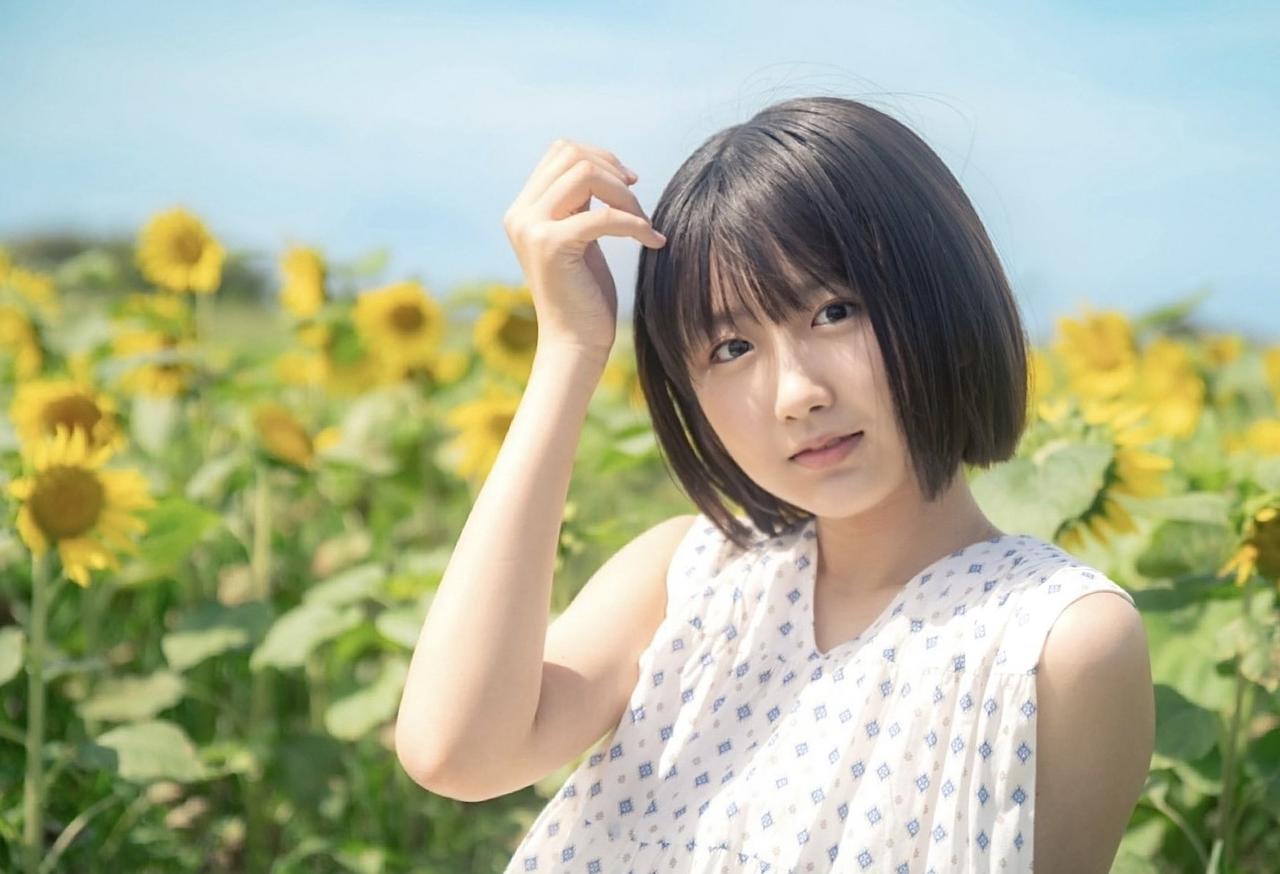 海边漫步,阳光明媚,少女微笑,城市天际线,美好时光。