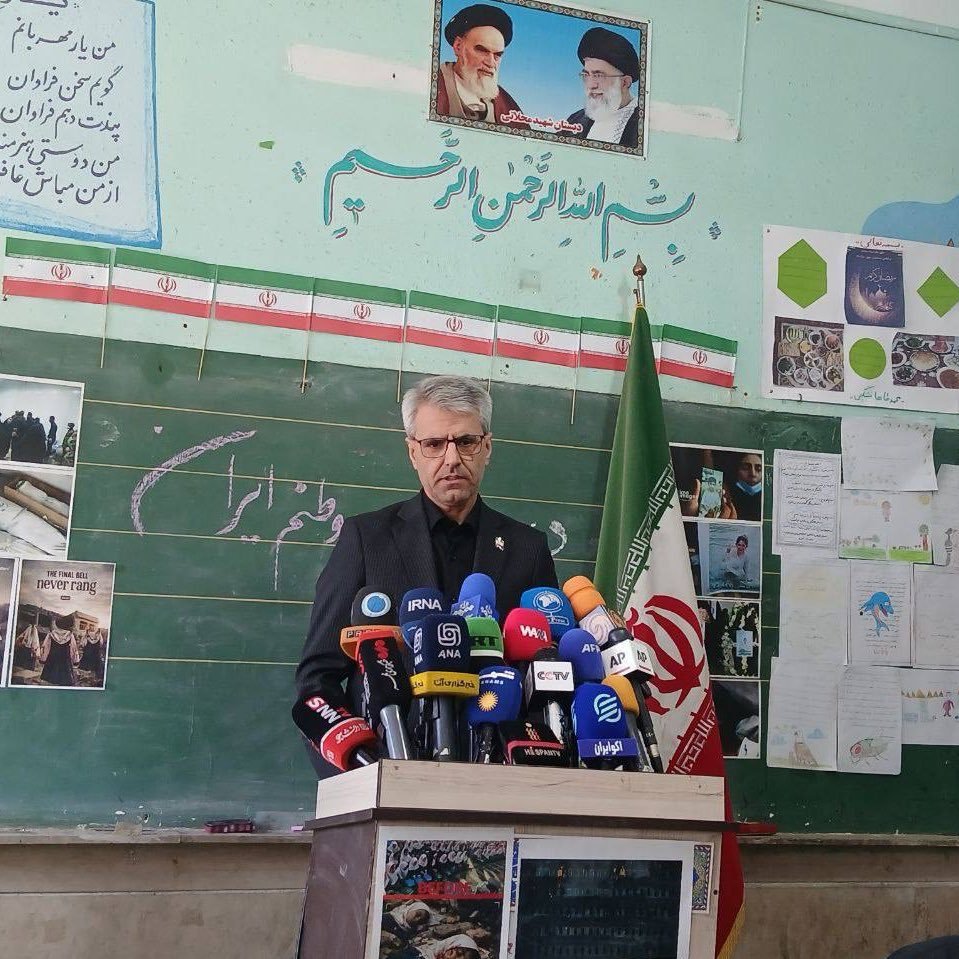 伊朗外交部发言人伊萨迈尔·巴盖伊在一所遭轰炸的小学举行了新闻发布会。