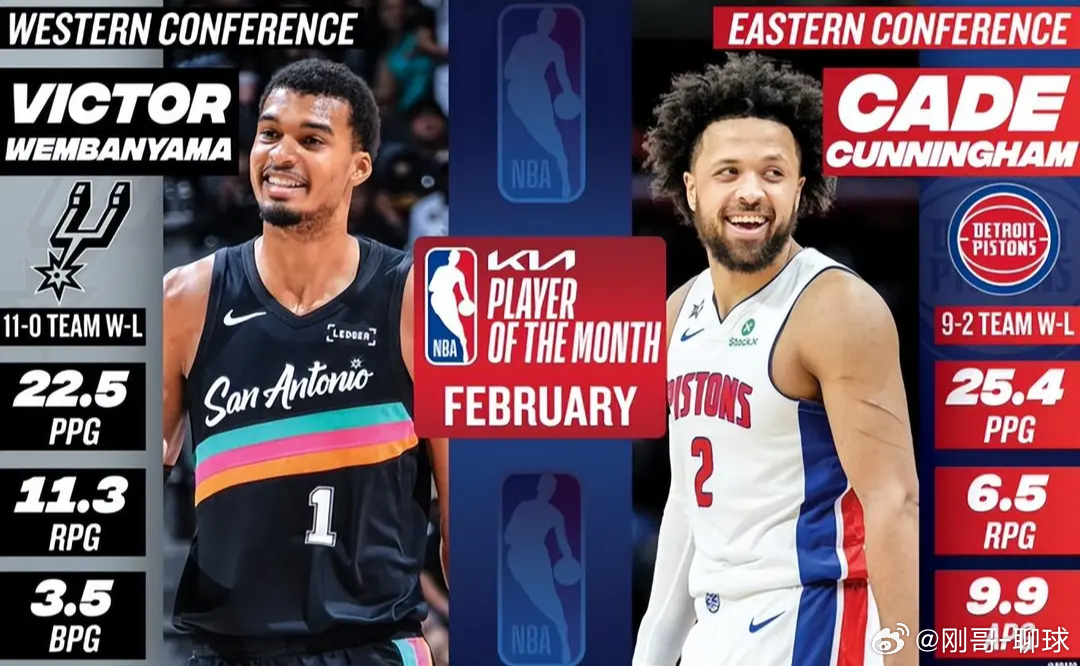 NBA官宣2月大奖:文班亚马包揽双项MVP+DPOY 马刺创历史包揽西部四大奖项nba文班亚马 北京时间3月4日,NBA官方公布2025-26赛季2月联盟月度奖项,圣安东尼奥马刺成为历史首支包揽西部全部四项月度大奖的球队,书写联盟新纪录。维克托·文班亚马迎来生涯巅峰时刻,一人独揽西部月最佳球员与西部月最佳防守球员两项重磅荣誉,这是他生涯首次当选月最佳球员,也是连续第二个月斩获西部月最佳防守球员。2月他率领马刺打出11胜0负不败战绩,场均贡献22.5分、11.3篮板、3.5助攻、3.5盖帽、1.4抢断,攻防统治力拉满,场均3.5次盖帽领跑全联盟,成为本赛季MVP与DPOY的头号热门。新秀迪伦·哈珀当选西部月最佳新秀,场均12.5分、4.9助攻、3.9篮板,投篮命中率55.4%,展现稳定即战力。主帅米奇·约翰逊获评西部月最佳教练,本赛季第二次获此殊荣,成功捏合年轻阵容打出联盟顶级净效率。东部方面,月最佳球员为活塞坎宁安,月最佳防守球员为凯尔特人德里克·怀特,月最佳新秀为黄蜂克努佩尔,月最佳教练为骑士阿特金森。据官方统计,这是1982-83赛季以来联盟第三次、西部首次单队同揽月最佳球员、新秀、教练三大奖;加上防守奖项,马刺完成史无前例的西部四项全包揽,以完美二月宣告强势崛起。