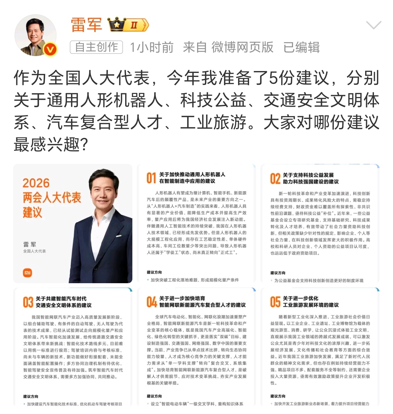 从春晚舞台上机器人的大放异彩我们可以得知,如今人形机器人可以说是大势所趋,而在未来甚至人形机器人取代人工都不是幻想。雷军建言加快人形机器人规模化量产