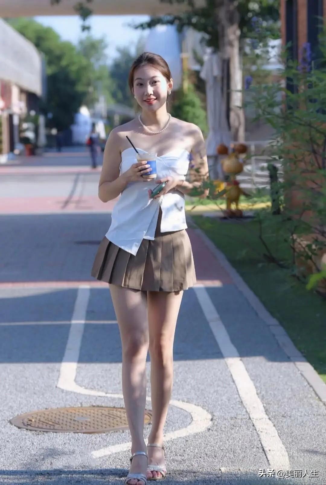 轻盈粉色连衣裙,搭配高跟鞋,漫步在绿意盎然的小巷中。