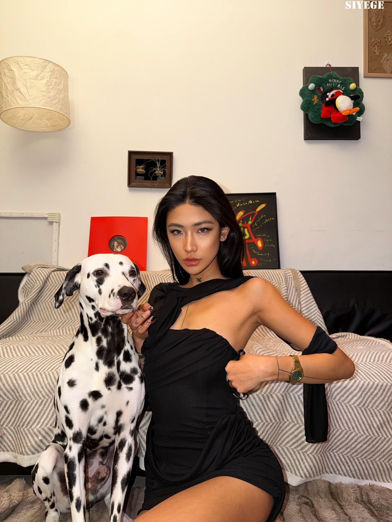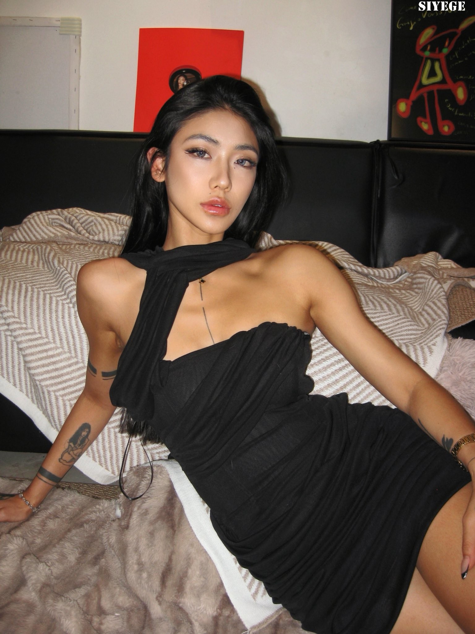 林允黑色吊带礼服裙造型