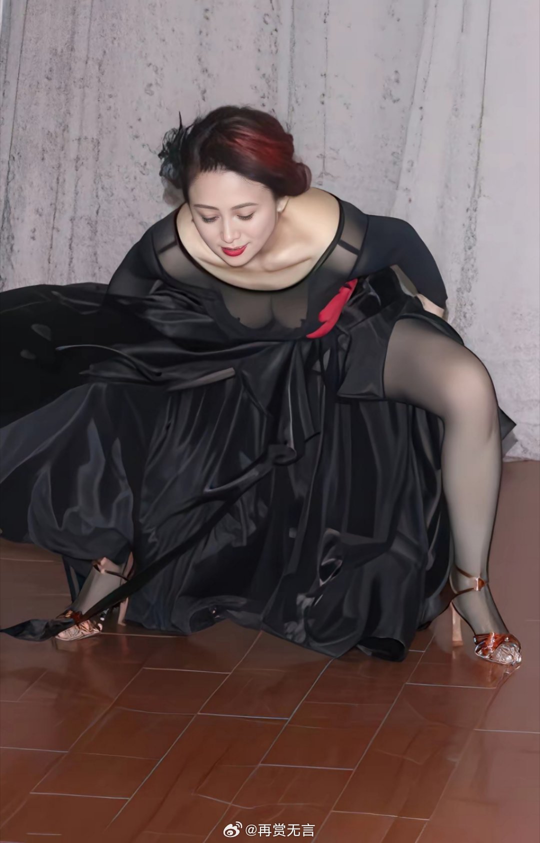 ✨柳岩这身材谁顶得住啊!黑金羽毛裙直接焊在身上吧!深V+高开叉把曲线拿捏得