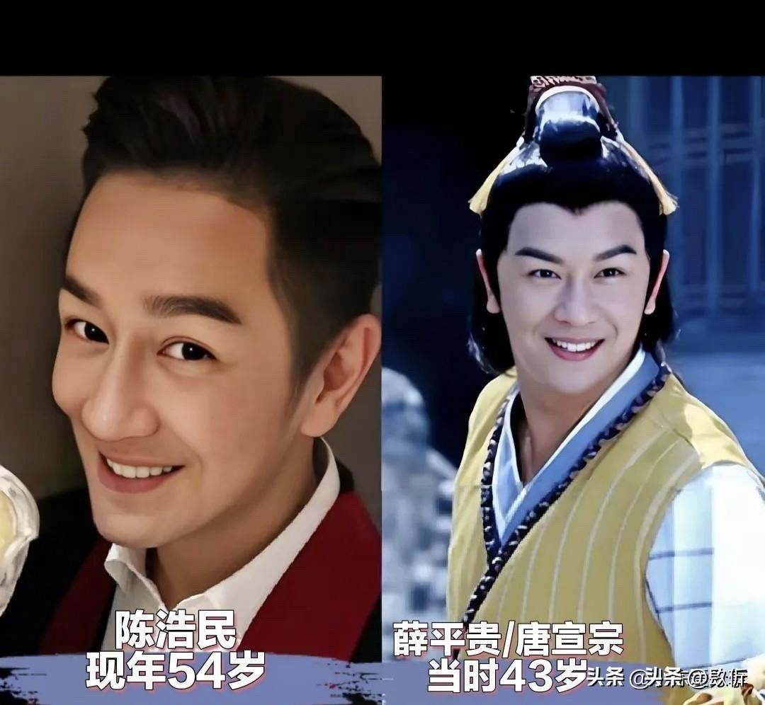 时隔12年!《薛平贵与王宝钏》演员今昔对比 先说薛平贵,就是那个从叫花子变成皇帝的主儿。演他的是陈浩民,那时候43岁,一人分饰两角,又演薛平贵,又演唐宣宗。他把薛平贵那种从底层爬起来、重情重义、最后当上皇帝的劲儿演得挺好。 陈浩民是香港人,出道挺早。他演过太多古装戏了,《天龙八部》里的段誉,《西游记》里的孙悟空,《封神榜》里的哪吒,《活佛济公》里的济公。他是真正的“古装男神”,穿上古装就有那个范儿。 他演的段誉,那可是经典中的经典。 王宝钏,就是那个相府千金,为了薛平贵苦守寒窑十八年。演她的是宣萱,那时候42岁,把王宝钏那种痴情、坚强、最后等来好日子的劲儿演得特别好。 宣萱是香港人,TVB的当家花旦。她演过太多经典了,《刑事侦缉档案》里的武俏君,《寻秦记》里的乌廷芳,《流金岁月》里的程天蓝,《老婆大人》里的高希敏。她是TVB视后,是无数人心中的女神。 她演的王宝钏,真是让人心疼。一个千金大小姐,为了爱情,跟家里决裂,住寒窑,吃野菜,一等就是十八年。