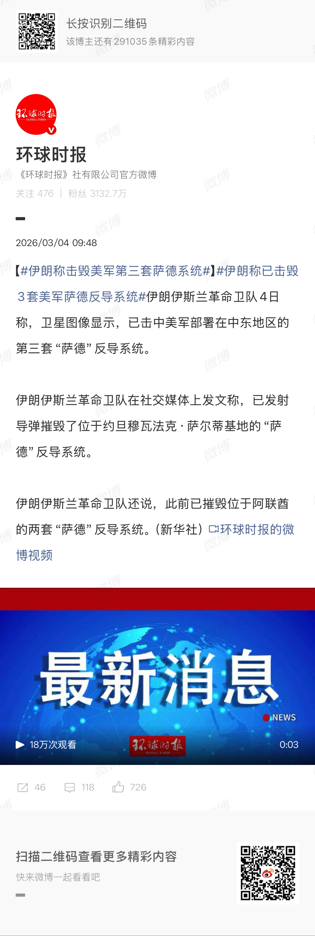 🔻基本核实。伊朗称击毁美军第三套萨德系统海外新鲜事中东现场直击