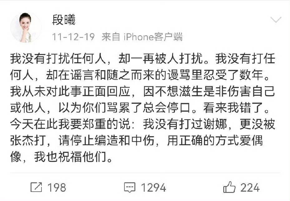 张杰前女友 被出轨是事实薛之谦朋友提到的那个段曦,是张杰的前女友来着。也算圈内人,就是没张杰谢娜那么红。当年也参加过选秀,当过歌手、主持人,长得还挺好看的。其实当年两边粉丝就吵过架,段曦自己早就澄清过好多次了,那些乱七八糟的传闻估计不是真的。要是谢娜真的是插足她和张杰感情的第三者,她怎么可能还说祝福的话啊,早就该出来锤了不是?