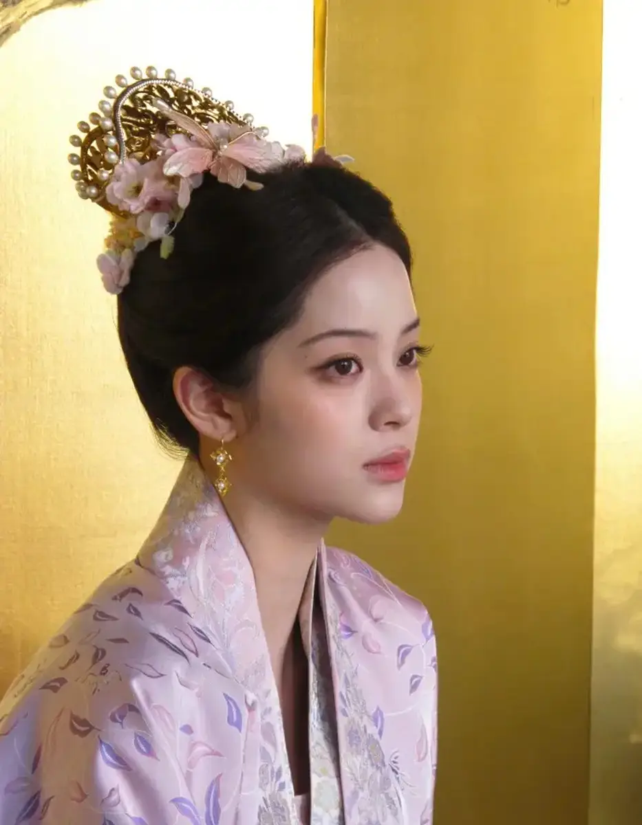欧阳娜娜穿粉色古装典雅大气 戴鲜花装饰头冠好精致
