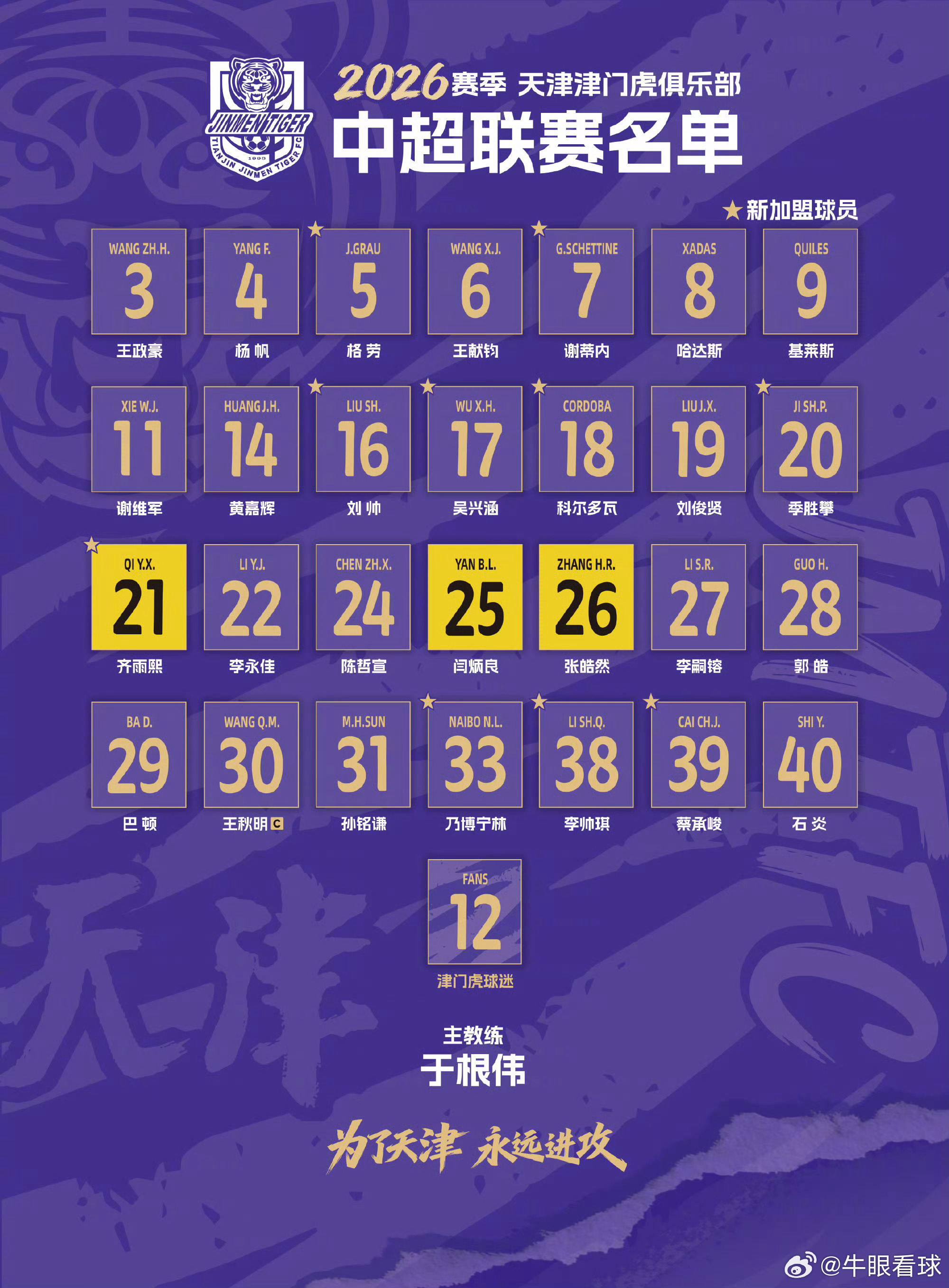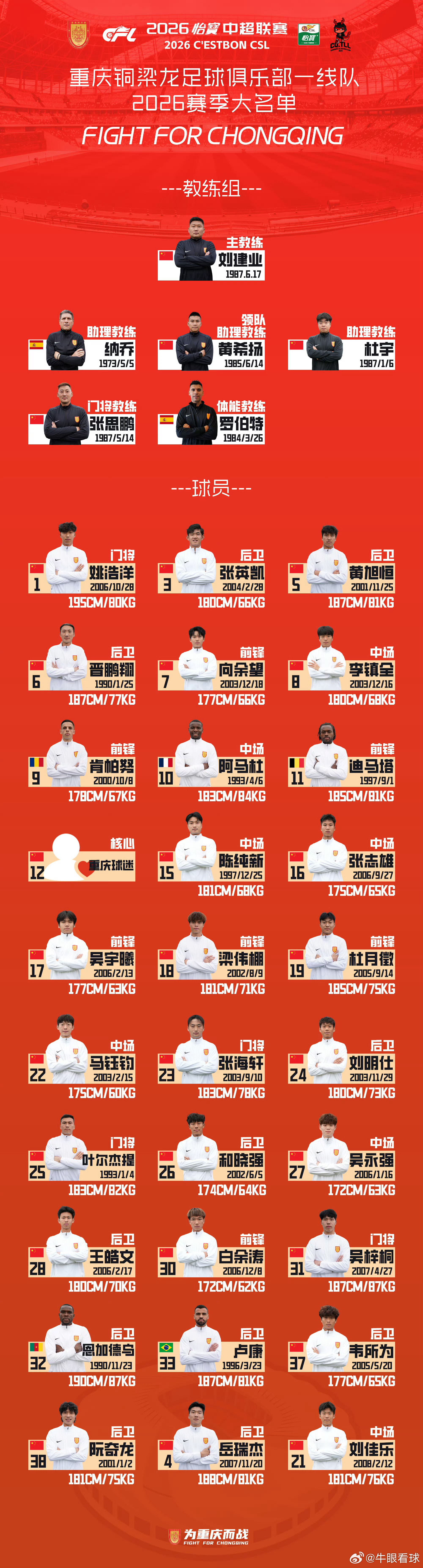目前看到的各队官方公布的名单,大家可以补充。