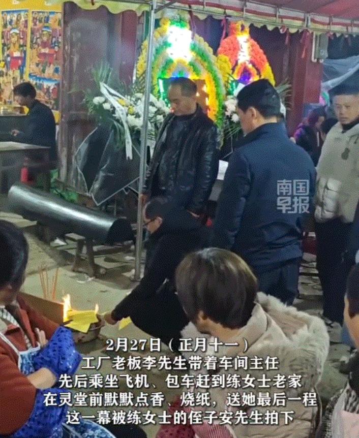 万万没有想到,贵州一44岁女子,春节后从老家返回广东打工,结果在返程的高速上突发心梗离世。不料女子出殡前,她工厂的老板和员工竟先后乘坐飞机、包车,特意赶到女子老家送她最后一程,并现场承诺,女子的孩子毕业后,随时都可以来厂里上班。 而老板的暖心之举,不但让女子的家属和亲戚觉得感动,这村里的村民们也纷纷表示,这是一个有情有义的好老板! 可能很多人刷到这事儿,第一反应都是不敢信。毕竟现在不少雇佣关系,说白了就是上班干活、下班拿钱,员工出事,老板能按规定给点补偿,就已经算讲规矩了。 但这位老板,完全打破了大家对“老板”的固有印象。先跟大家说下真实细节,这位离世的女子姓练,大家都喊她阿玉姐,今年44岁,在广东中山那家小工厂,安安稳稳干了15年。 她不是什么高管,就是车间里的一个班长,月薪也就3000多块钱。可她从来没抱怨过工资低,做事认真负责,对身边的工友也特别热心,厂里上上下下,没人不认可她的为人。 意外发生在正月初七,正是大家返程返岗的高峰。阿玉姐跟着家人,从贵州遵义凤冈县的老家出发,开车回广东中山上班。 途经广西河池德胜服务区时,高速正好堵车,她下车去厕所,突然就突发心梗。她的丈夫和女儿当场就慌了,手忙脚乱地打120,可春节高速太堵,救护车赶过来的时候,还是没能留住她。 一个好好的人,出门时还和家人有说有笑,转眼就阴阳两隔,换谁都接受不了。消息传到中山的工厂,老板李先生听到后,当场就红了眼,声音都哽咽了。 他没多想,立刻放下手头所有的工作,拉着车间主任,就从中山出发赶去贵州。他们先坐飞机到贵州遵义,接着又包车往凤冈的大山深处赶。 那天正好下着大雨,山路弯多路窄,一路颠簸了两个多小时,赶到村里的时候,已经是晚上七点多了。 到了阿玉姐家,李先生没多余的客套,直接走到灵堂前,默默点香、烧纸,对着阿玉姐的遗像深深鞠躬,一句话都没说,那份沉重,在场的人都能感受到。 他拉着阿玉姐丈夫的手,一遍遍地安慰,让他一定要坚强,好好把两个孩子抚养成人。得知阿玉姐的大女儿今年高三,马上就要高考,小女儿才8岁。 他当场就承诺,等大女儿大学毕业,随时可以来厂里上班,小女儿以后有任何困难,也都能找他。临走的时候,李先生还留下了3万元抚恤金,还有一张30多名工友的捐款清单。 那些工友,没有任何人动员,都是自发转账,还特意在捐款数字后面加了个1,501元、301元,就图个友谊天长地久的好彩头。 村里的人,看着老板千里迢迢冒雨赶来,做的这一切,都特别动容。大家都说,阿玉姐在外面打工15年,没白干,遇到了一个真正有情有义的好老板。 其实大家感动的,不只是那3万元抚恤金,也不只是那句就业承诺。更重要的是,老板没有因为阿玉姐只是个普通员工、工资不高,就轻视她的付出。 15年,阿玉姐把最踏实的时光,都奉献给了这家工厂;老板在她离世后,用最体面、最真诚的方式,回敬了她的忠诚和付出。 这不是刻意作秀,毕竟没人会为了作秀,特意花时间、花精力,冒雨走那么远的山路。现在很多打工人,拼命干活,不只是为了那点工资。 更希望自己的付出能被看见、被尊重,希望自己不是一个单纯干活的工具,而是被当成家人一样对待。 阿玉姐无疑是幸运的,她遇到了这样的老板。反观我们身边,还有很多老板,只想着压榨员工,员工干得再好,一旦出事,跑得比谁都快。 李先生用自己的行动证明,老板和员工之间,从来不是单纯的利益关系,更可以是相互扶持、彼此温暖的家人。你对我真心,我对你负责,这份情义,比金钱更珍贵。 阿玉姐走了,但她用15年的踏实,换来了一辈子的体面。而李先生的暖心之举,也给所有老板上了一课:懂得尊重员工、珍惜员工的企业,才能走得更远。 愿更多老板能明白,员工才是企业最宝贵的财富,真心换真心,才能凝聚人心。也愿阿玉姐一路走好,她的孩子,能带着这份温暖,好好长大。