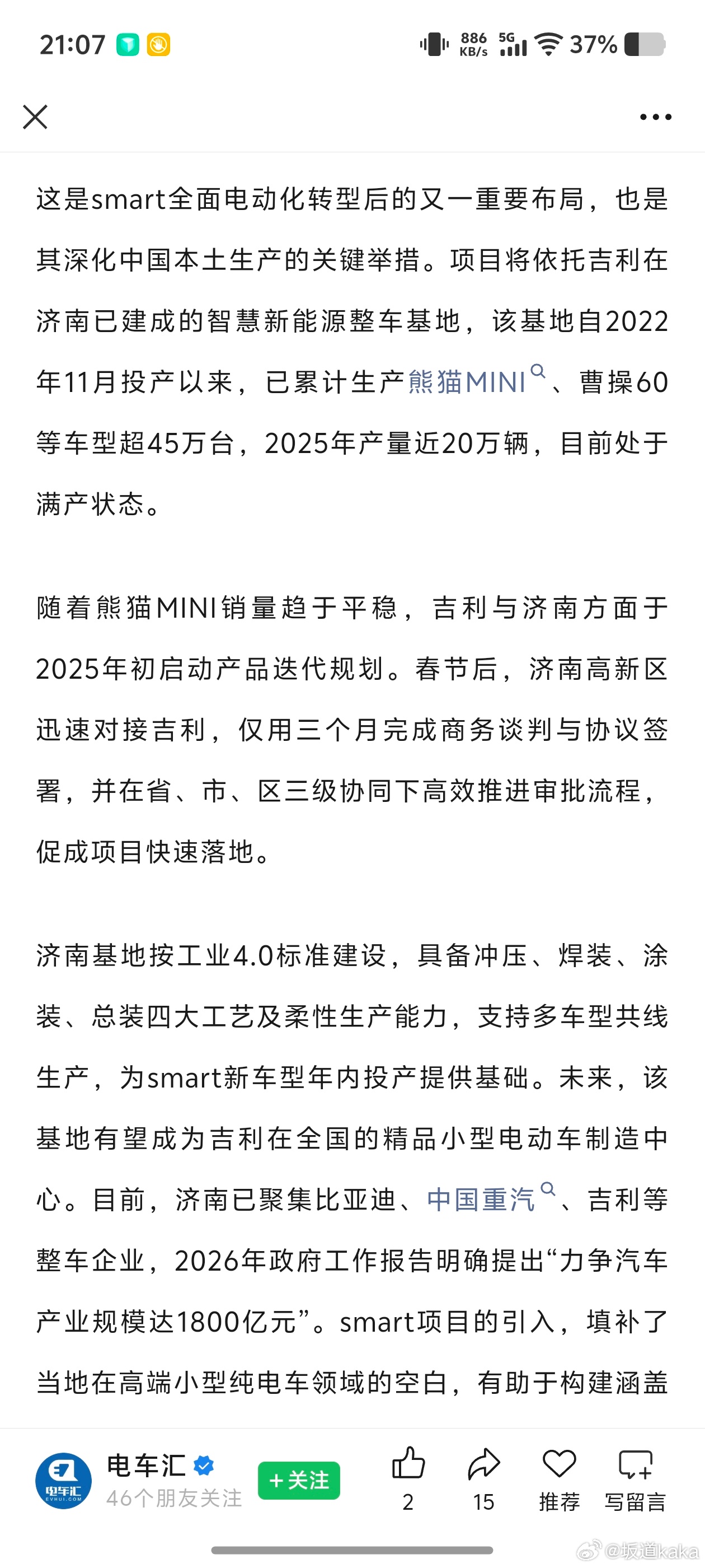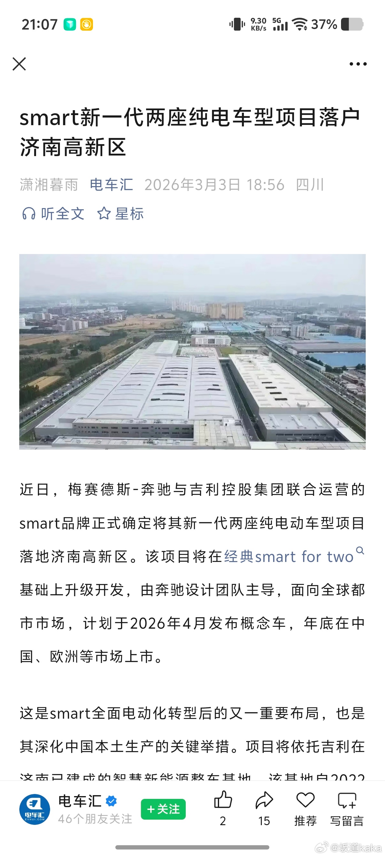 Smart 2号要来了!奔驰设计团队主导,山东济南吉利工厂制造。