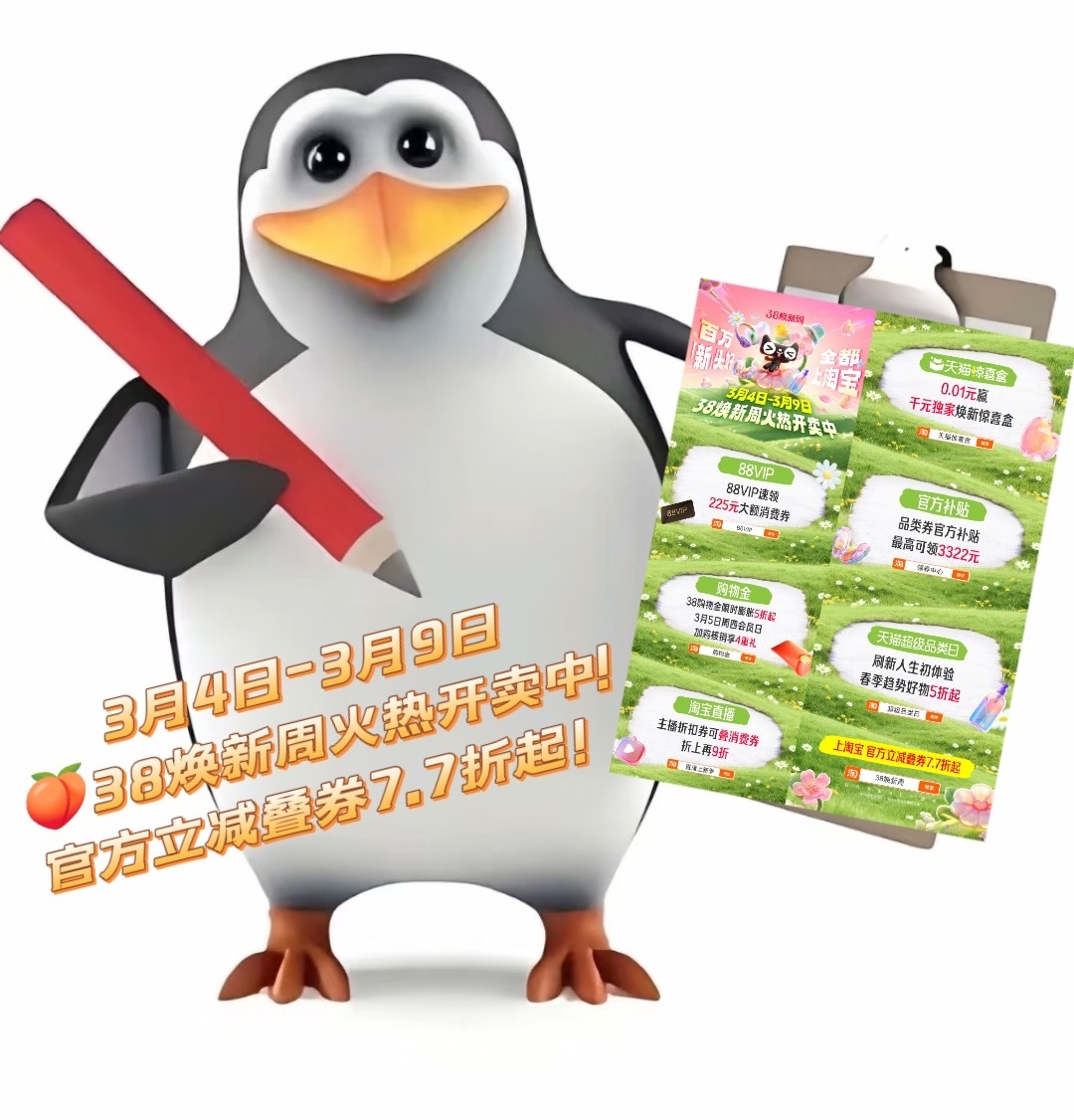 上淘宝38焕新周正式开卖百万新头好全都上淘宝穿春天的衣裳,过诗意的生活~38焕新周3.4-3.9开卖!职场到周末出街,每套look都闪耀~上🍑买起来,官方立减叠券折起,大牌春装焕新无忧,百万好物都在这!别选了,我全都要收入囊中~